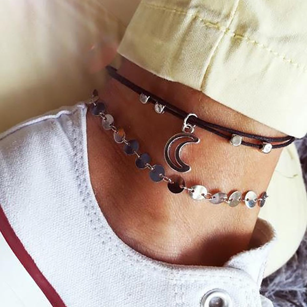 Features: Sequins, Moon Pendant, Multi-layer, Foot Jewelry