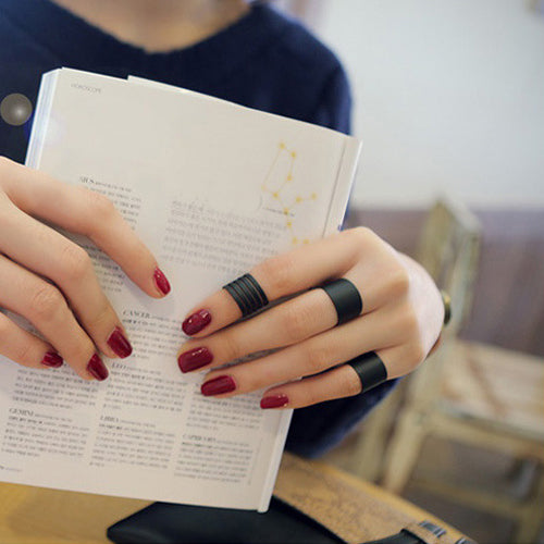3Pcs Fashion Jewelry Ring Set Black Stack Plain Above Knuckle Band Midi Rings