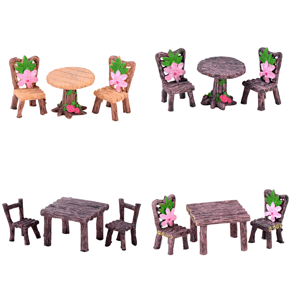 3Pcs/Set Cute Table Chair Micro Landscape Ornament Fairy Garden Miniature Decor