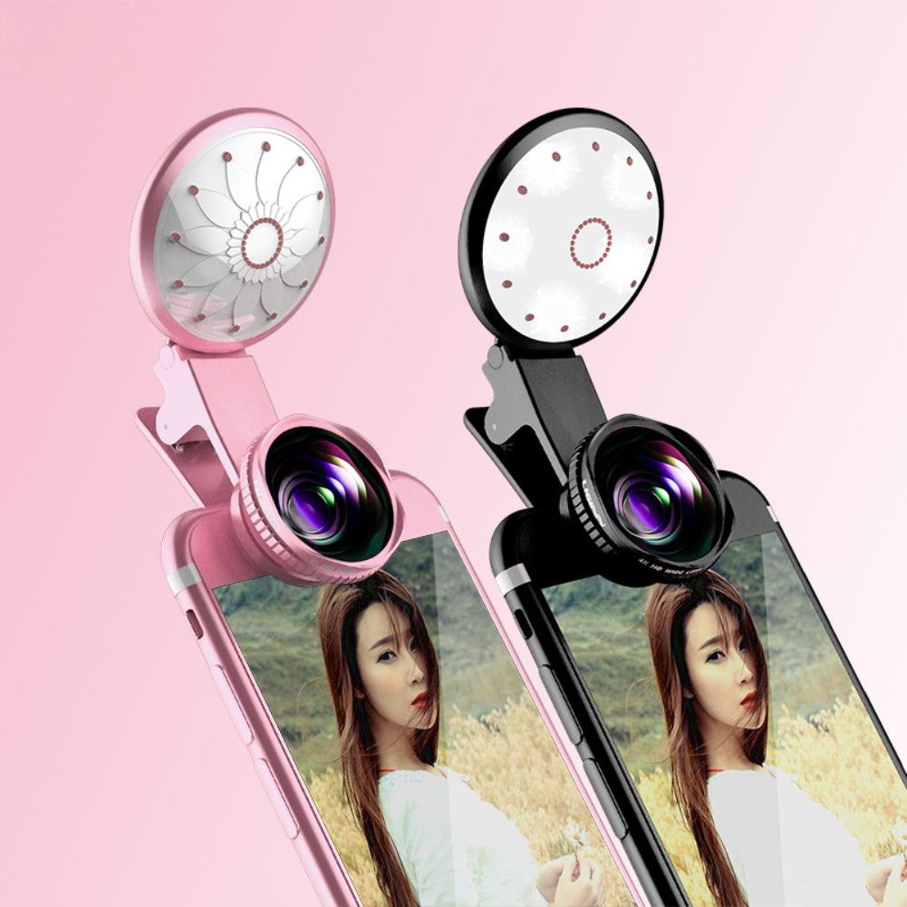 Features: Fill-in Light + Phone Camera Lens, Adjustable Light, Wide Angle Lens & Macro Lens, Selfie Accesory