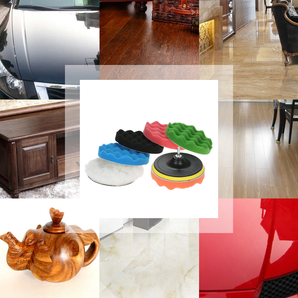Includes 5pcs polisher sponge pad + 1 woolen buffer + 1 adhesive pad with shank.