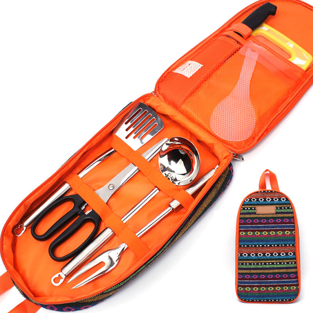 7Pcs Stainless Steel Camping Picnic Cutlery Set Knife Fork Spoon Utensil Tool