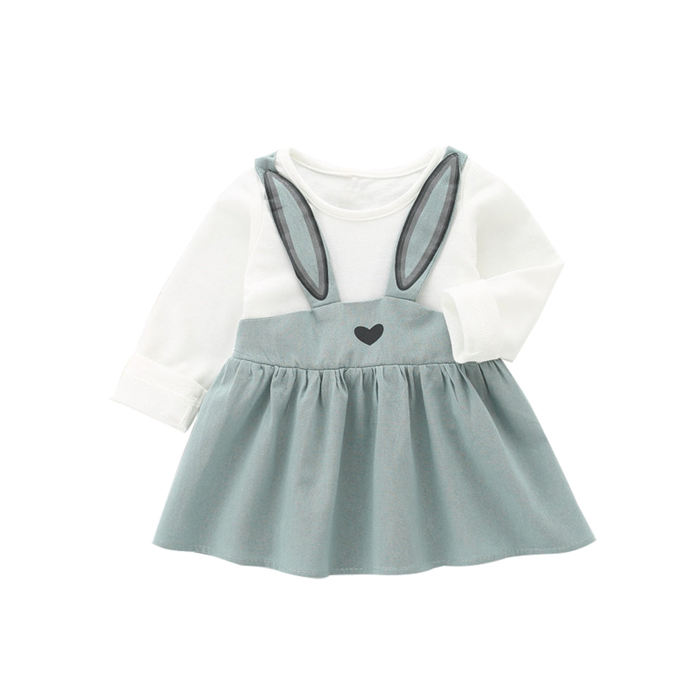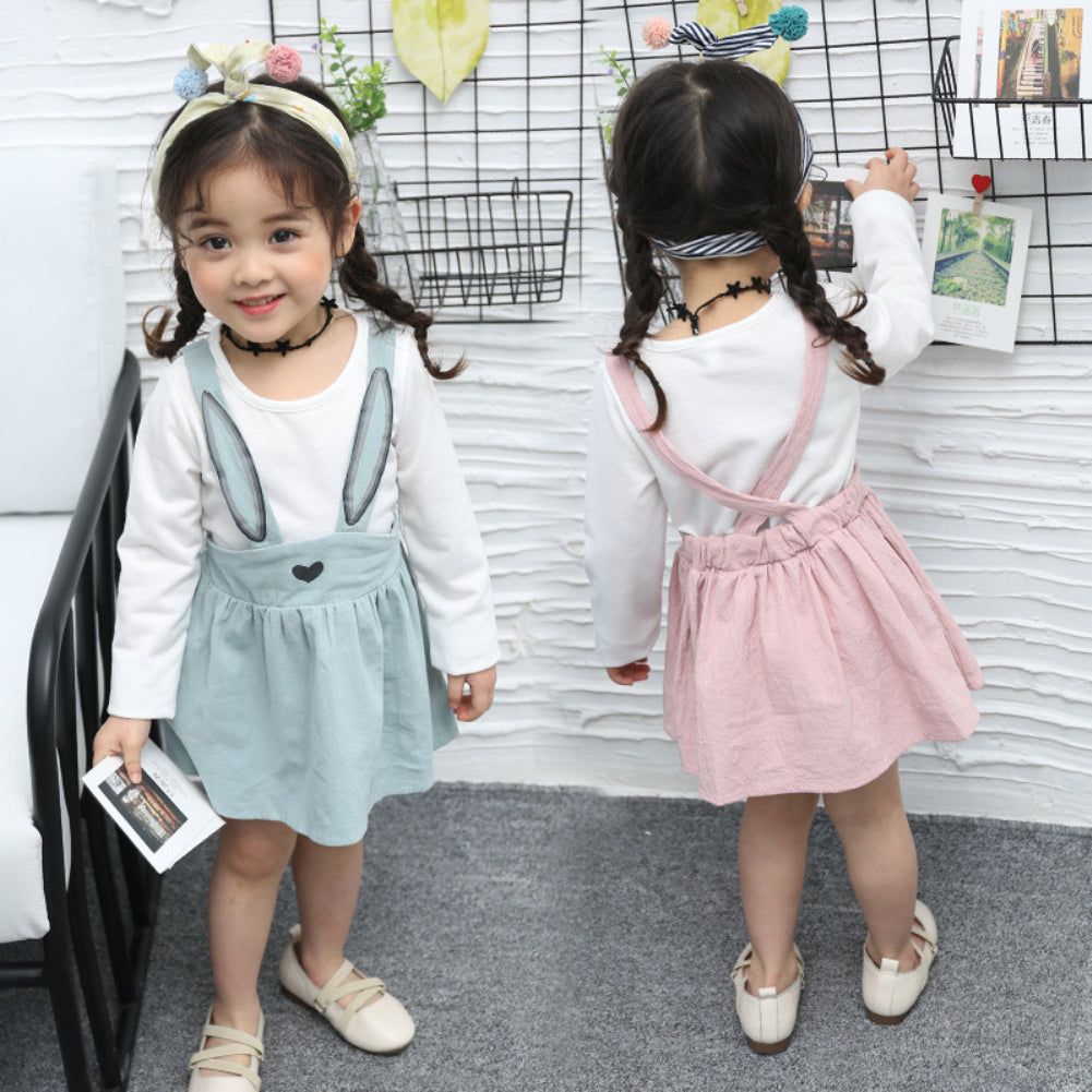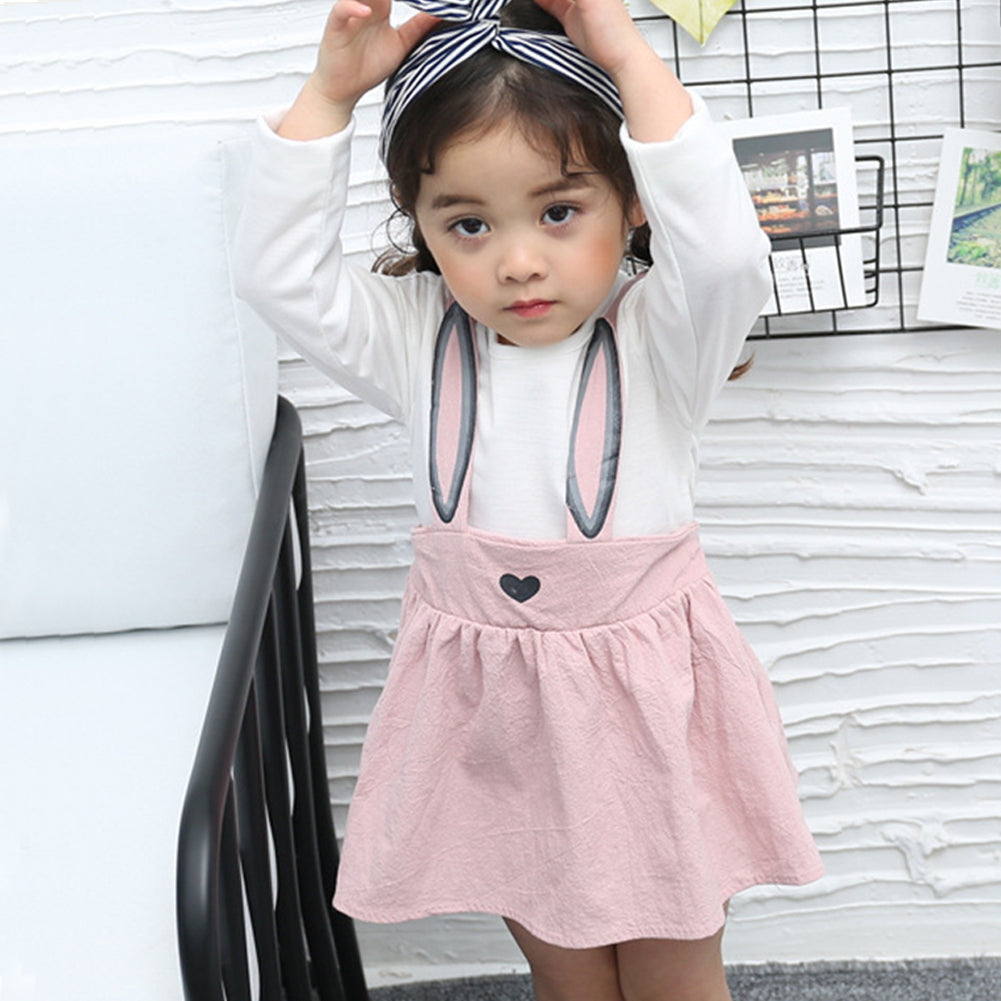 Autumn Spring Baby Kids Toddler Girl Cute Bunny Ears Braces Mini One Piece Dress