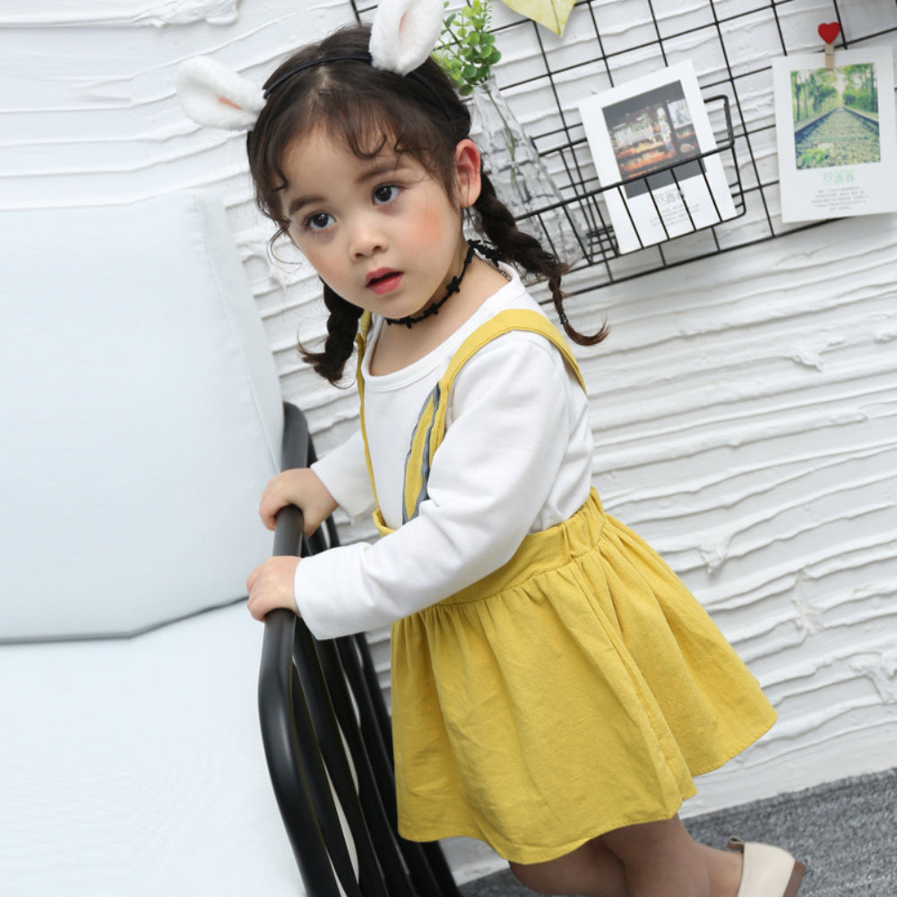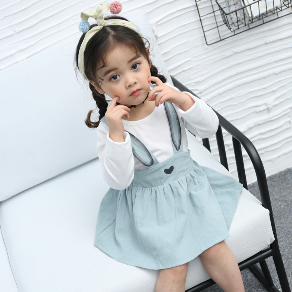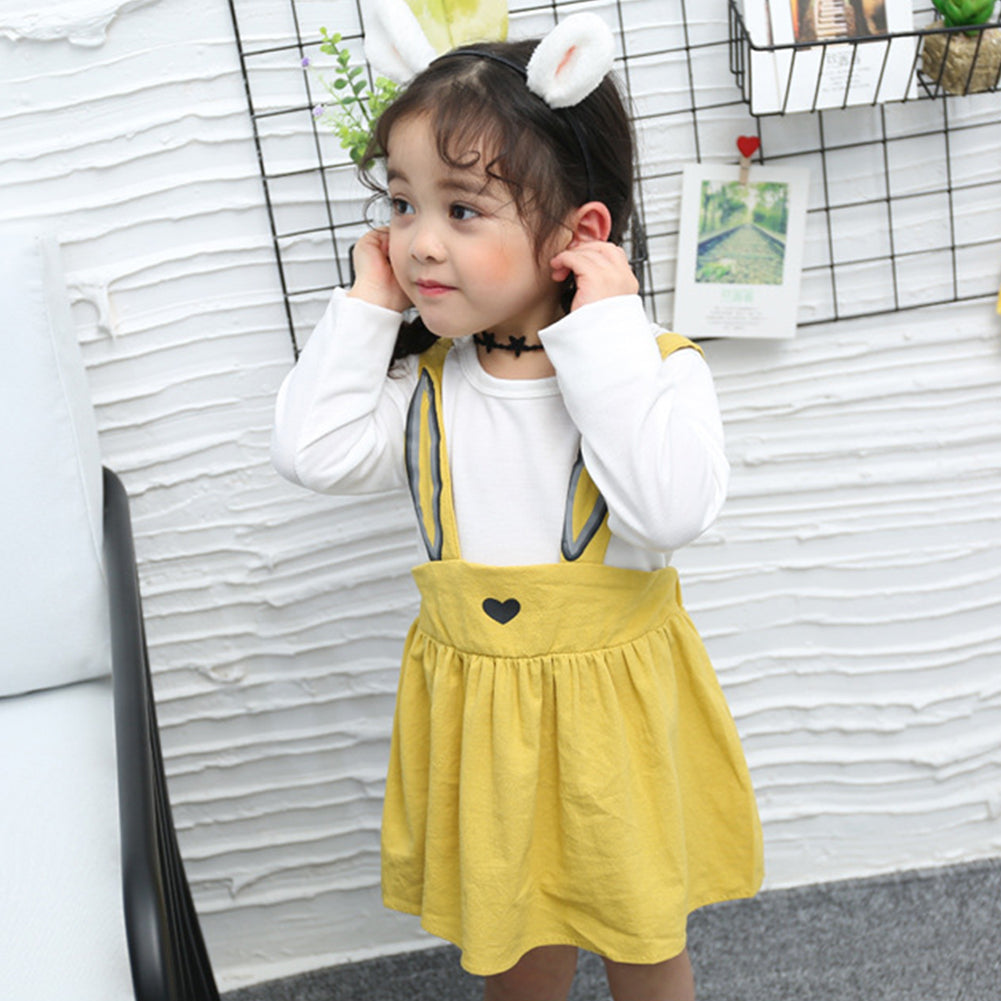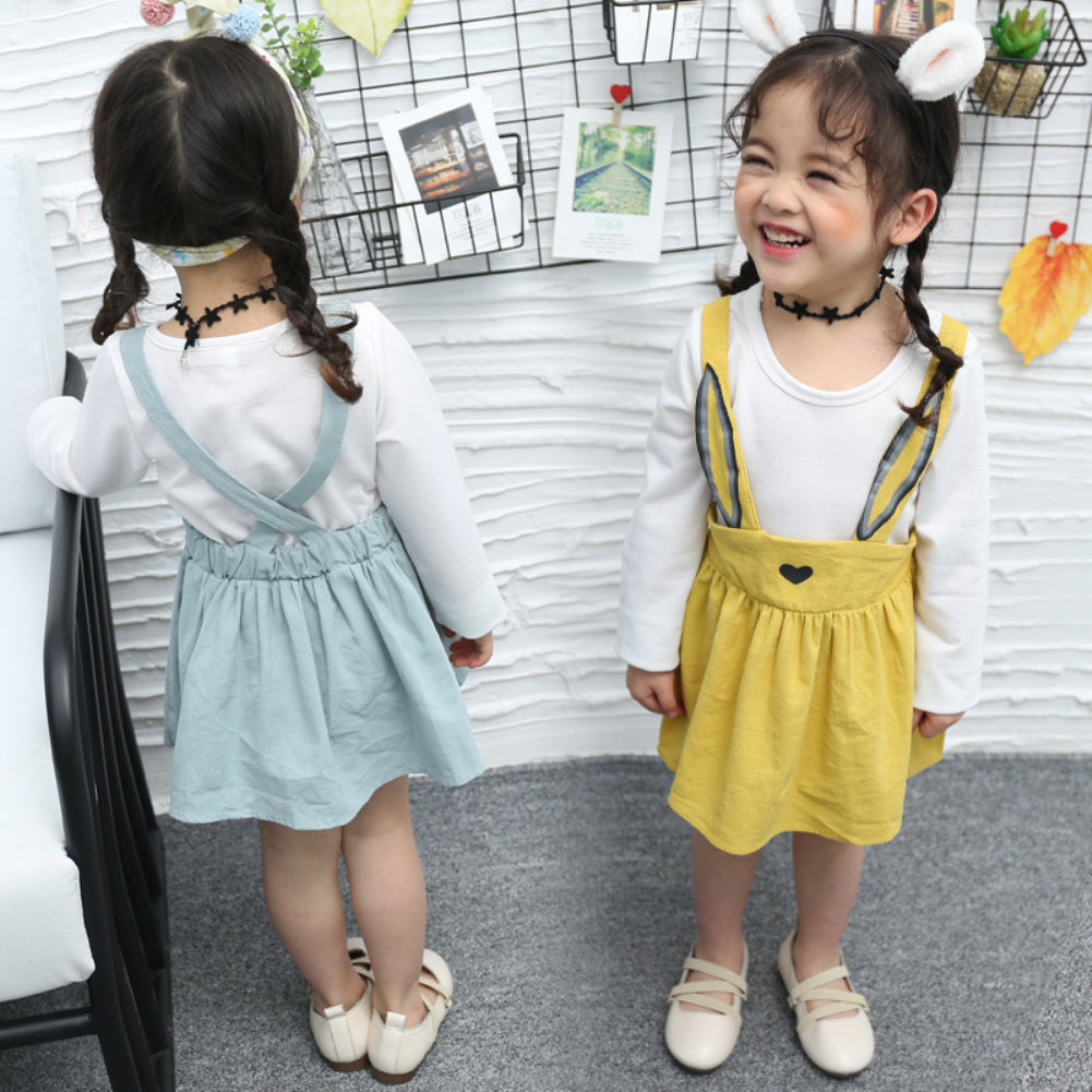 Autumn Spring Baby Kids Toddler Girl Cute Bunny Ears Braces Mini One Piece Dress