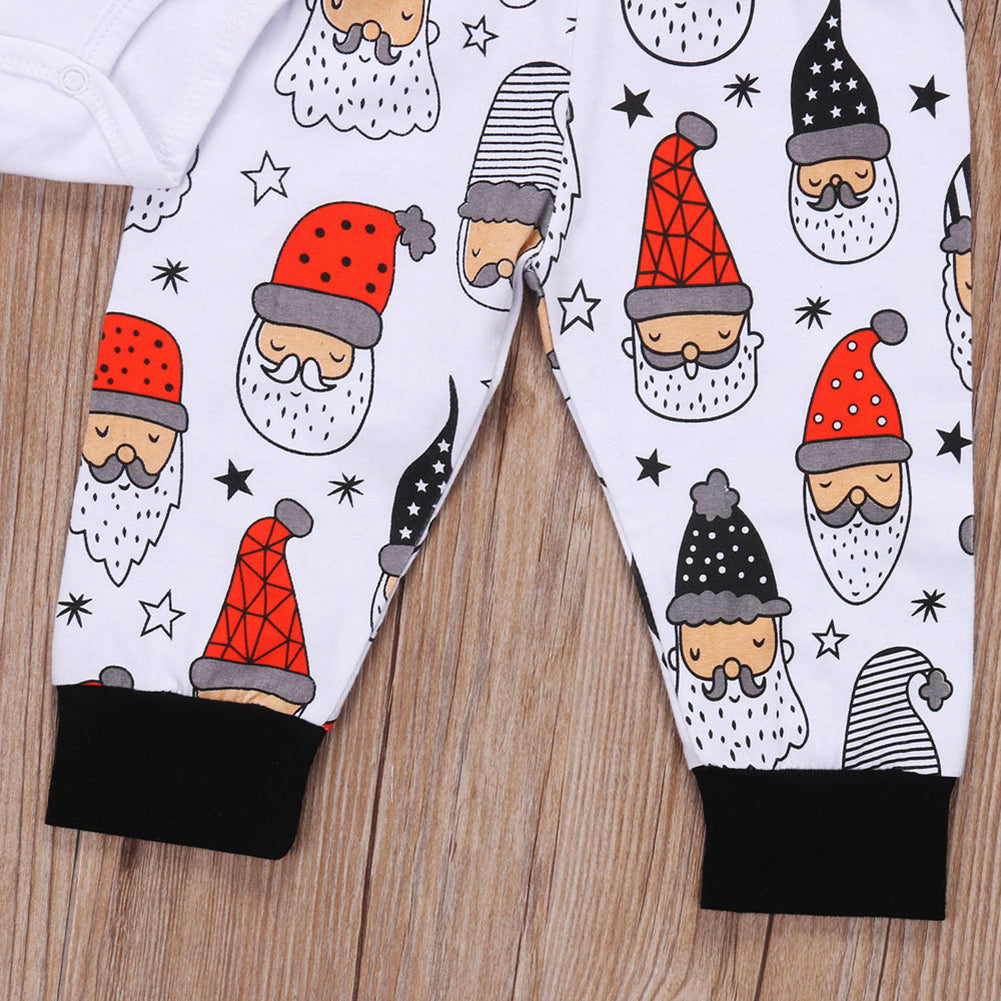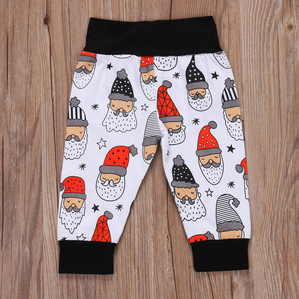 Baby Toddler Boys Girls Christmas Santa Print Cotton Clothes Set Romper + Pants