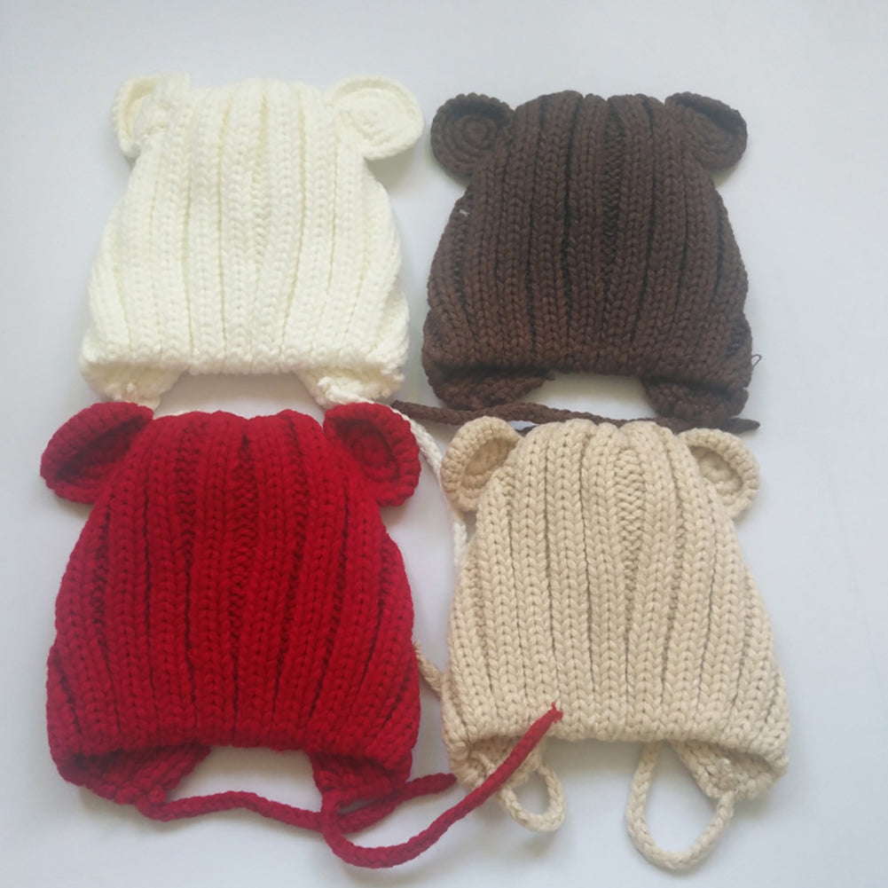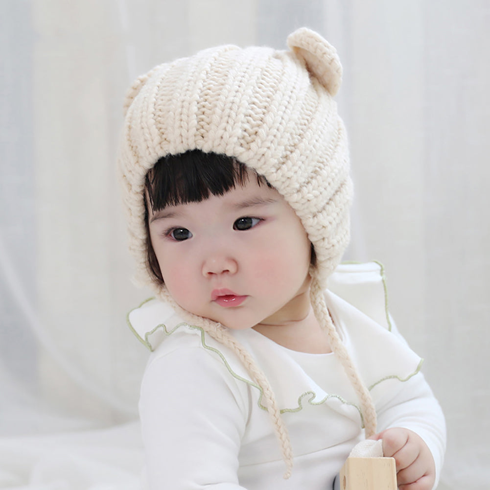 Bear Ears Cute Baby Hat Newborn Beanie Winter Warm Solid Color Knitted Cap