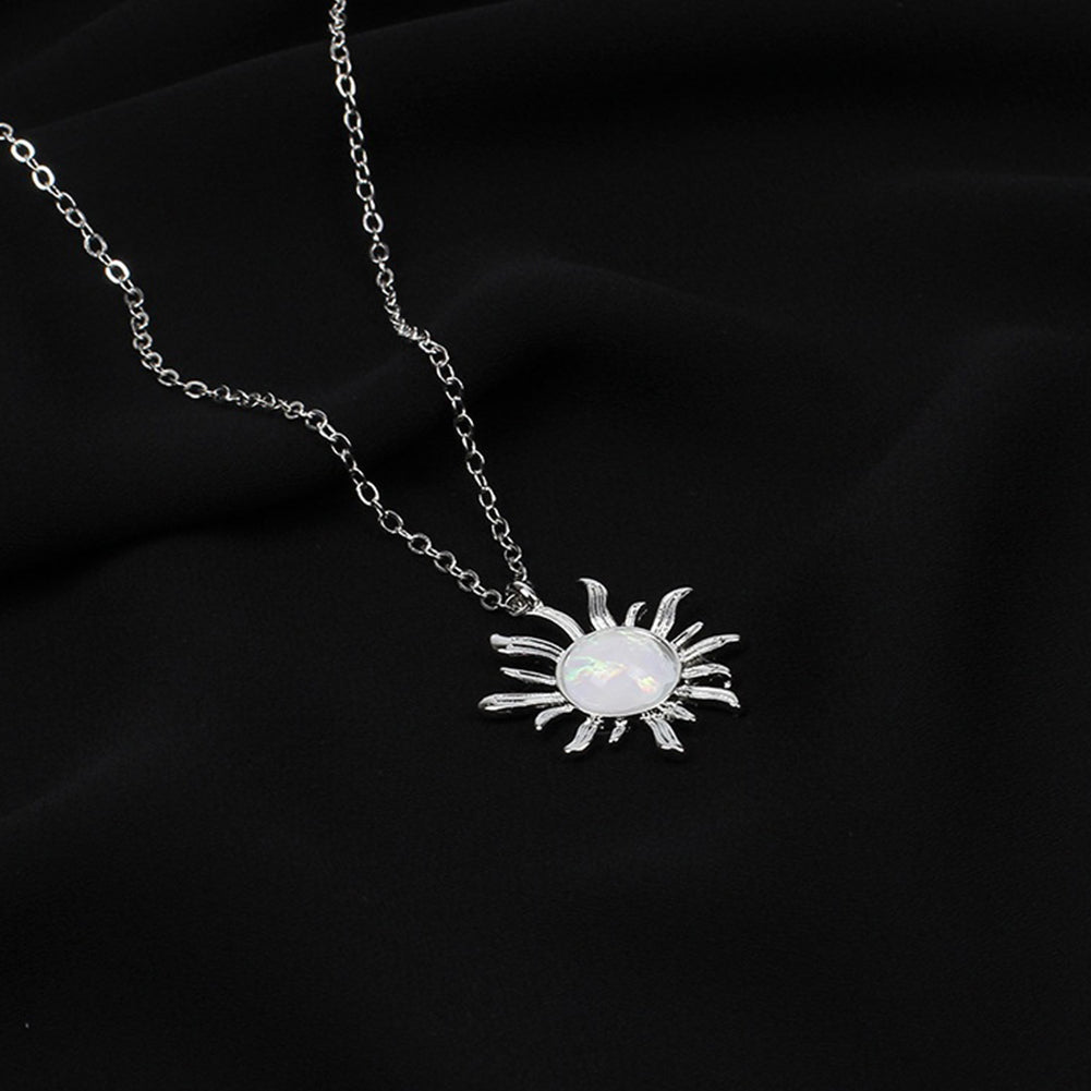 Creative sun shape pendant with inlaid opal stone, adds some elegant element for any women.