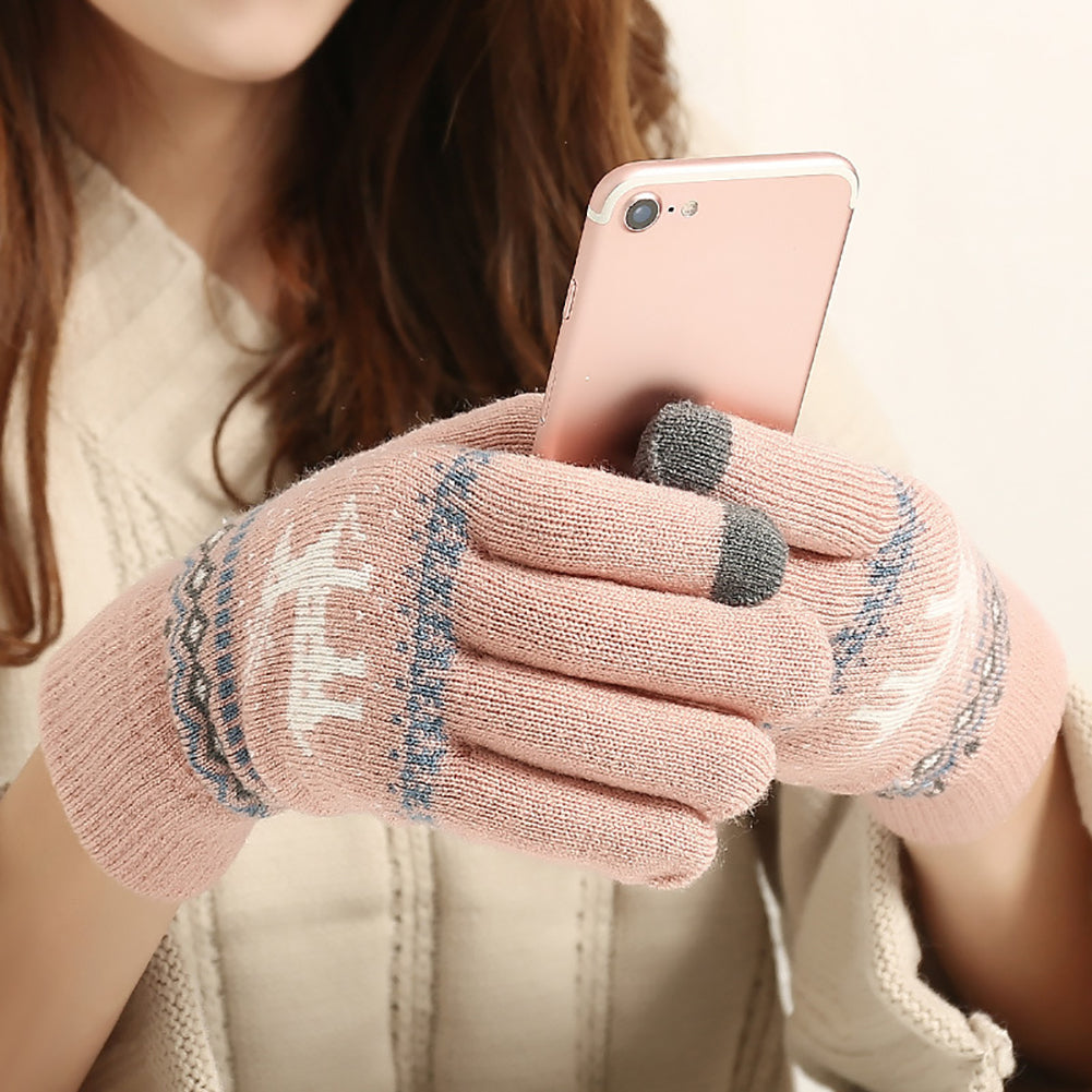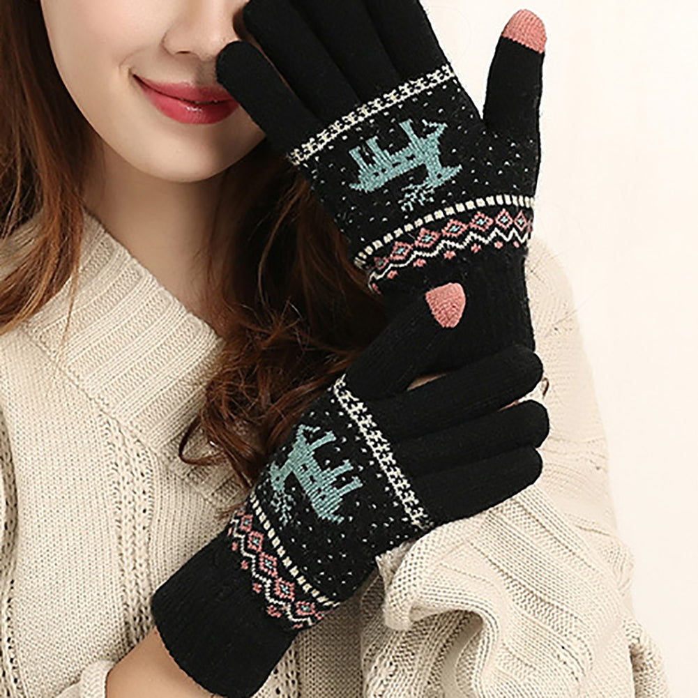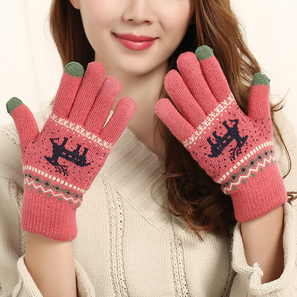 Christmas Reindeer Winter Soft Knit Touch Screen Smartphone Couple Warm Gloves