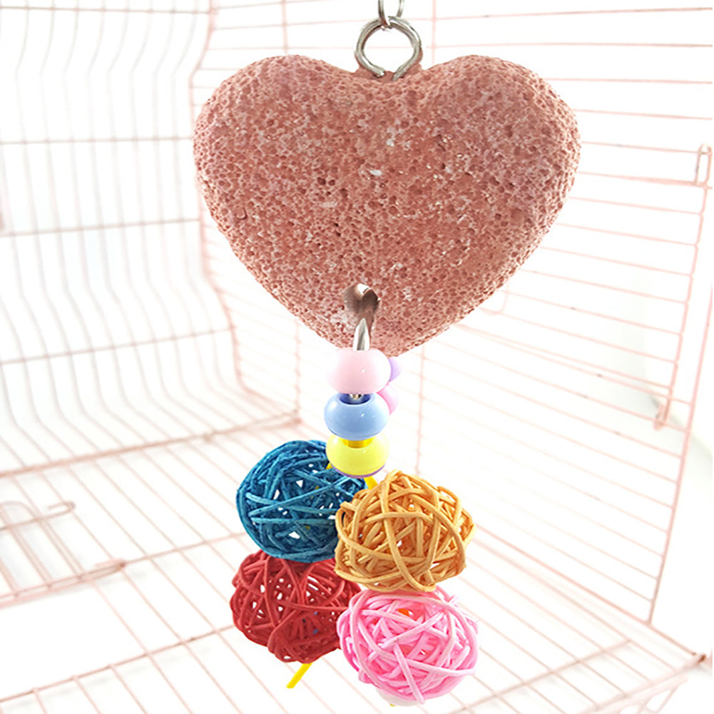 Colorful Pet Bird Teeth Care Chew Parrot Heart Stone Hanging Swing Balls Toy