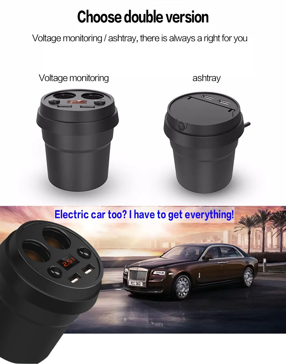 Cup Car Charger Multi-function Display Voltage 3.1A 2 USB Car-charger DC12-24V Cigarette Lighter Splitter For GPS DVR Charge