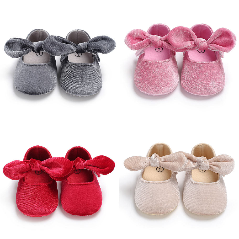 Cute Baby Girls Princess Bowknot Solid Color Soft Sole Shoes Prewalker Footwear