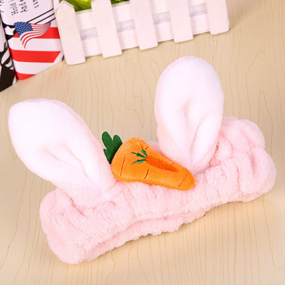Cute Carrot Rabbit Ears Flannel Headband Women Face Washing Elastic Hair Band