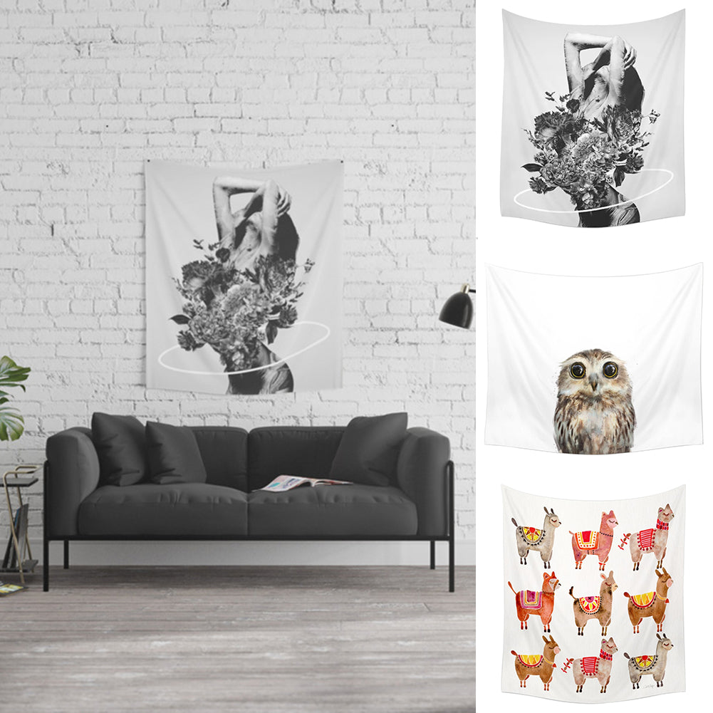 Cute Owl Alpaca Sexy Lady Tapestry Beach Towel Bikini Cover Up Blanket Yoga Mat