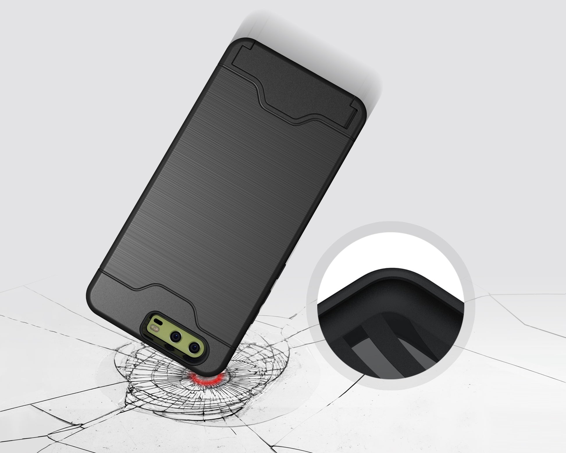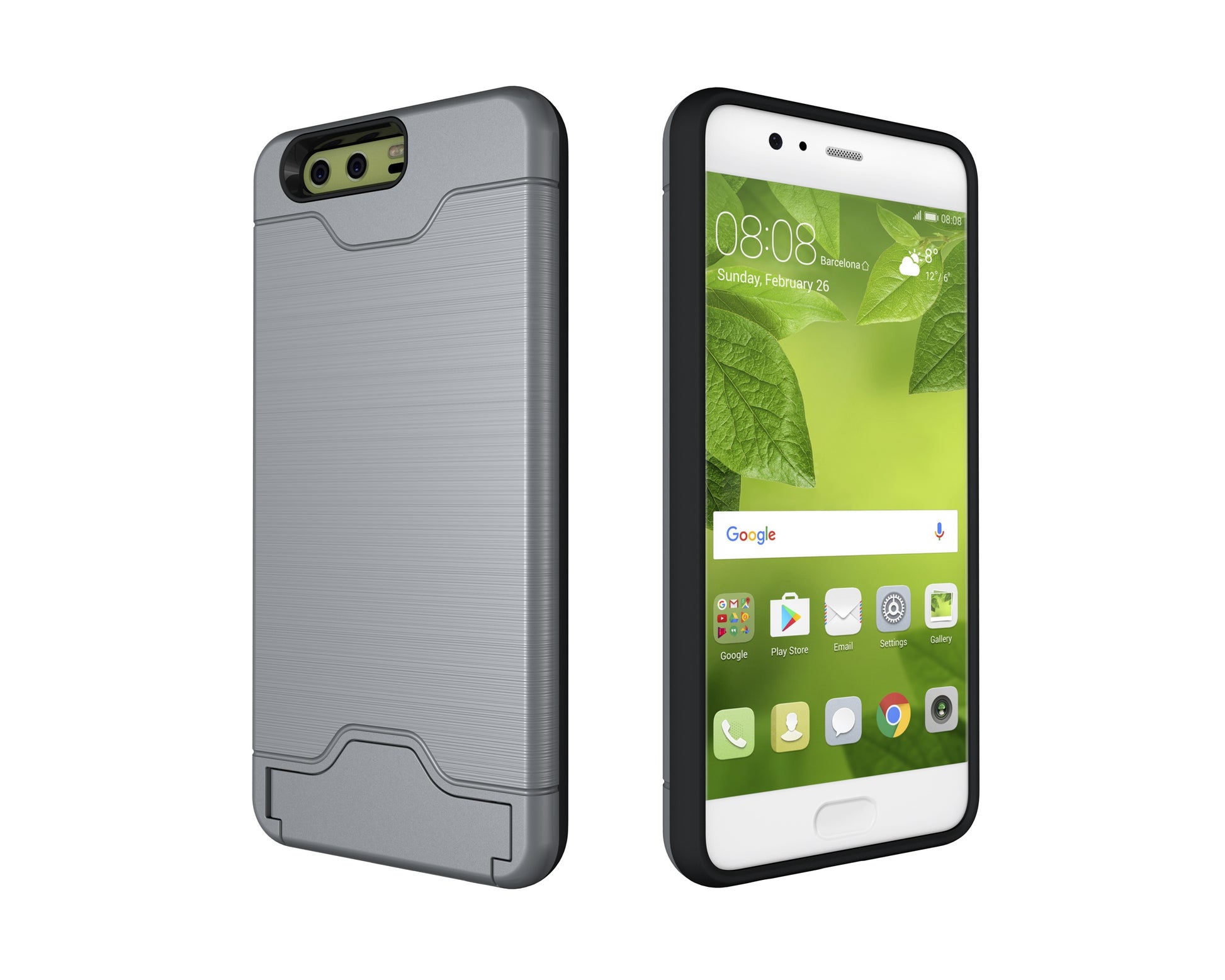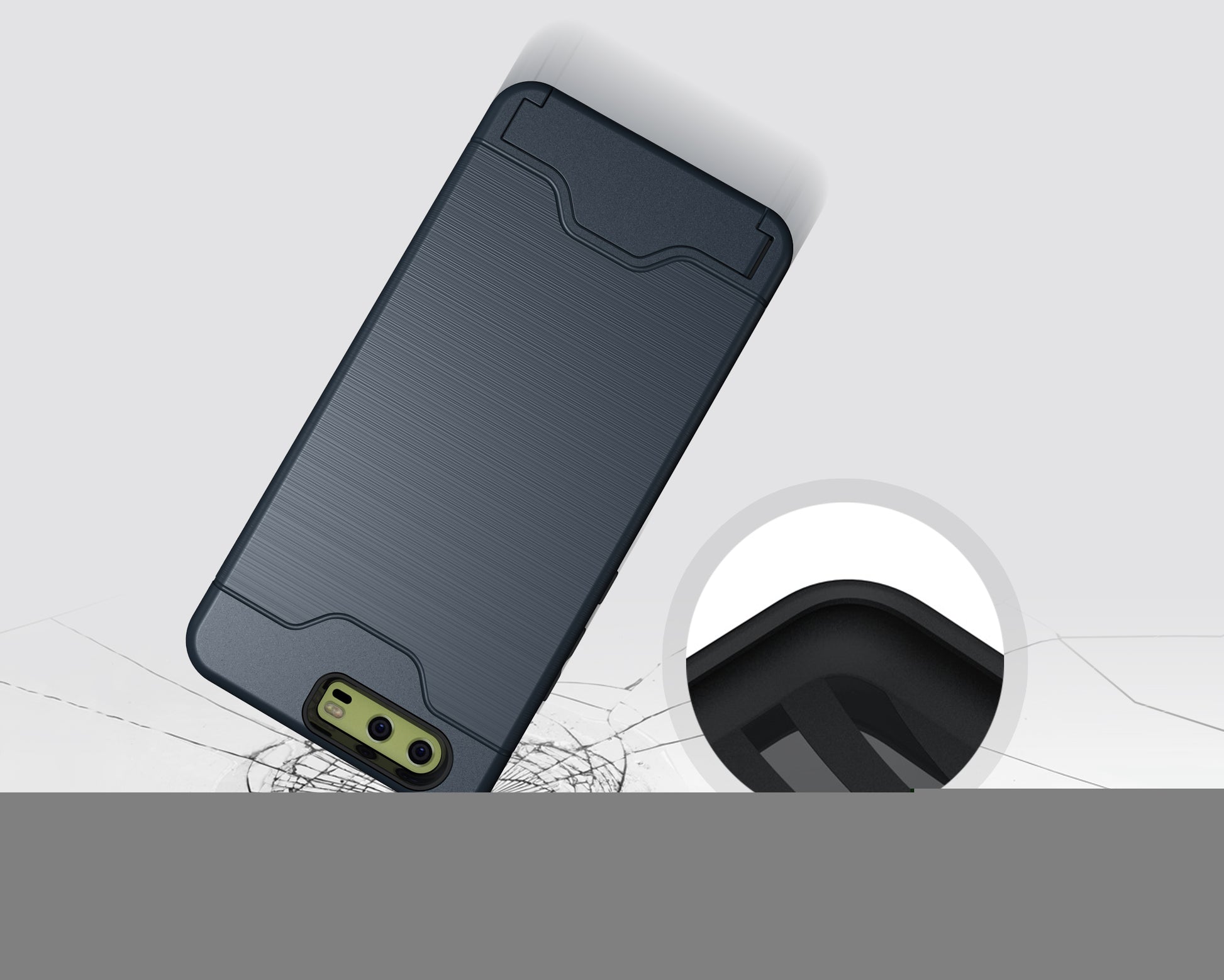 Durable Case Card Slot Brushed Texture Heavy Duty Hybrid Dual Layer Wallet Case Cover Shell with Kickstand for HUAWEI P10 Plus