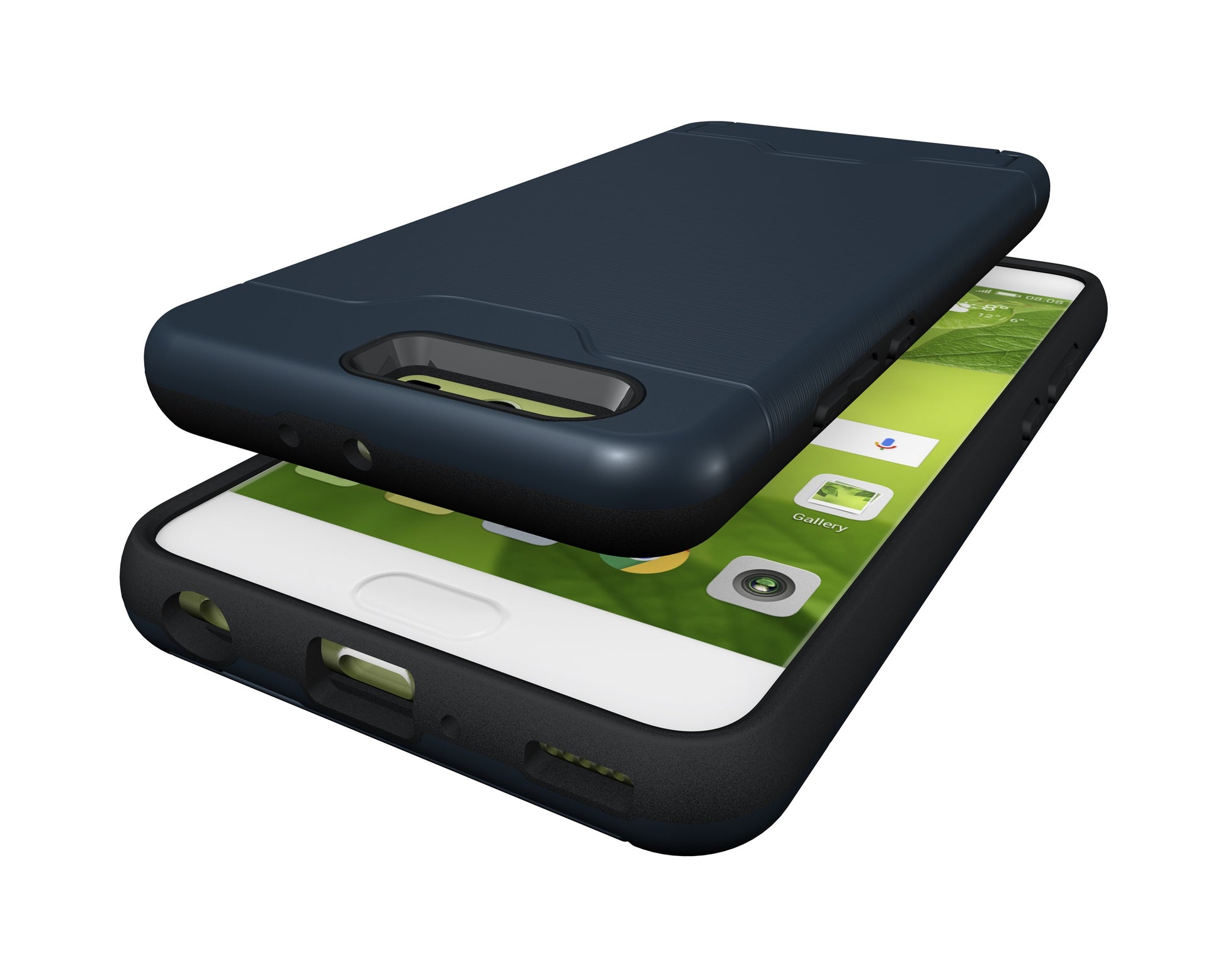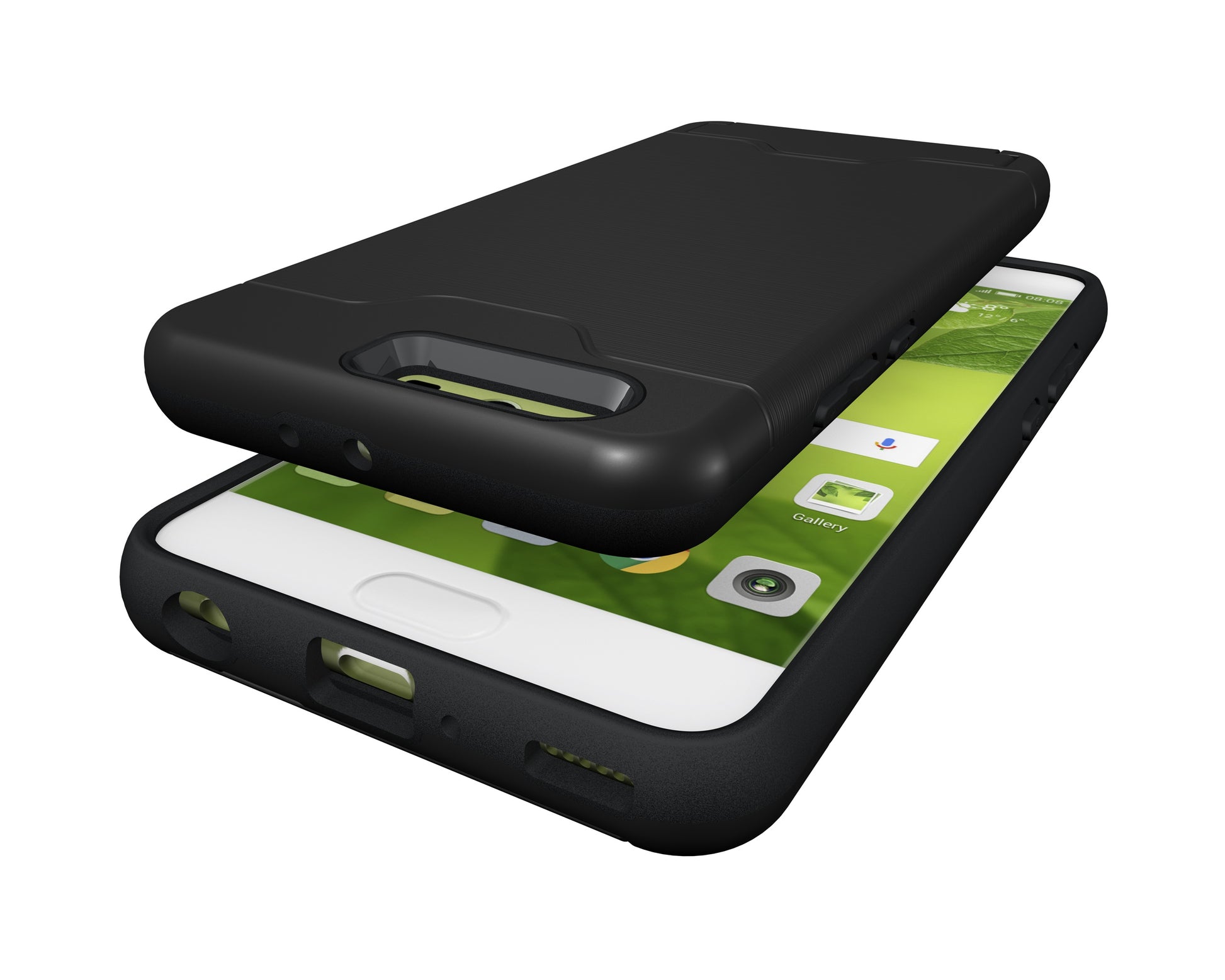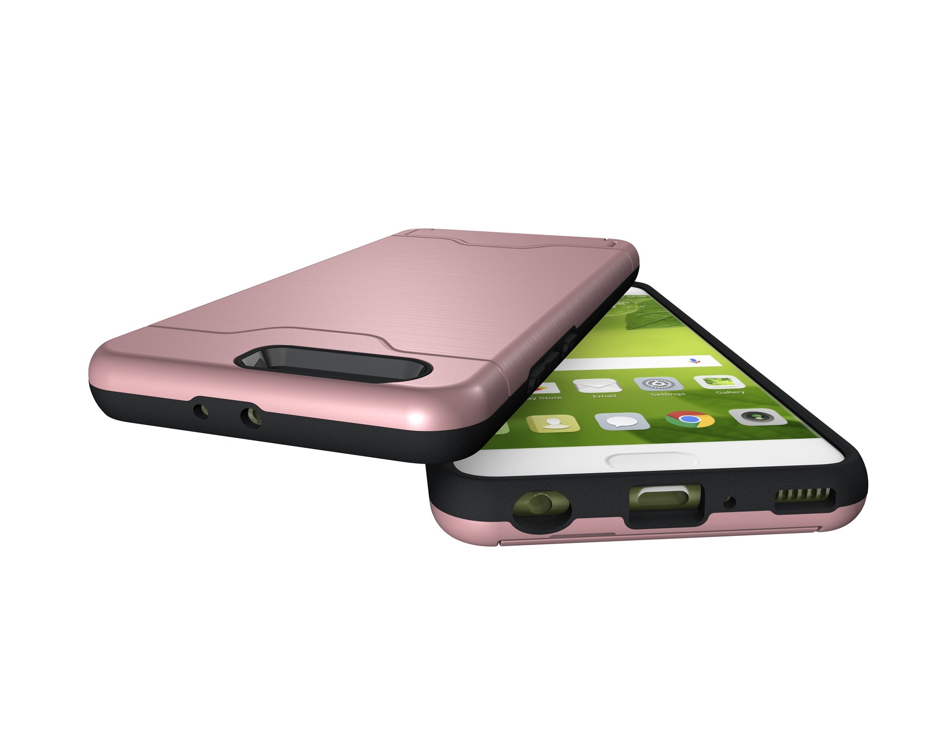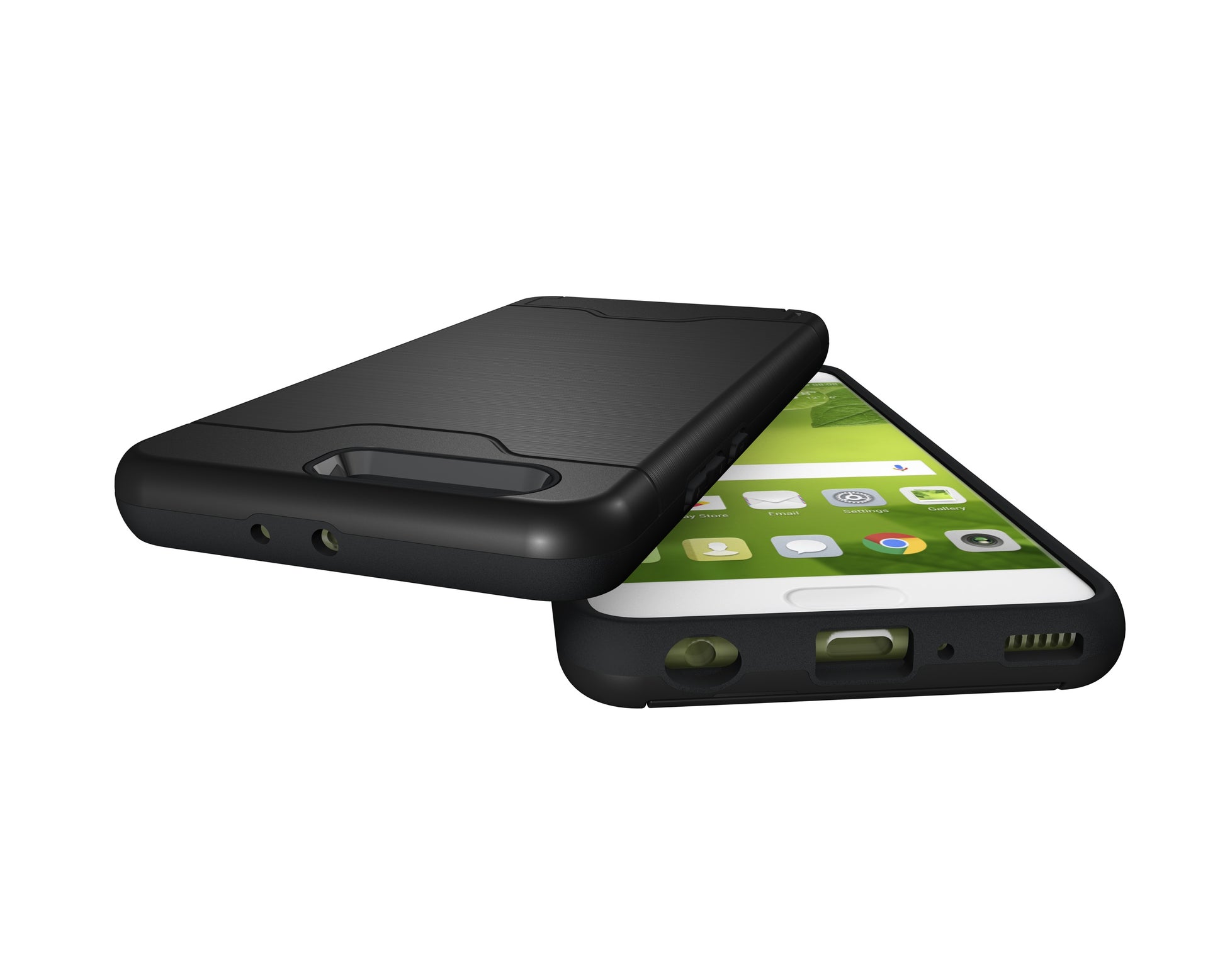 Durable Case Card Slot Brushed Texture Heavy Duty Hybrid Dual Layer Wallet Case Cover Shell with Kickstand for HUAWEI P10 Plus