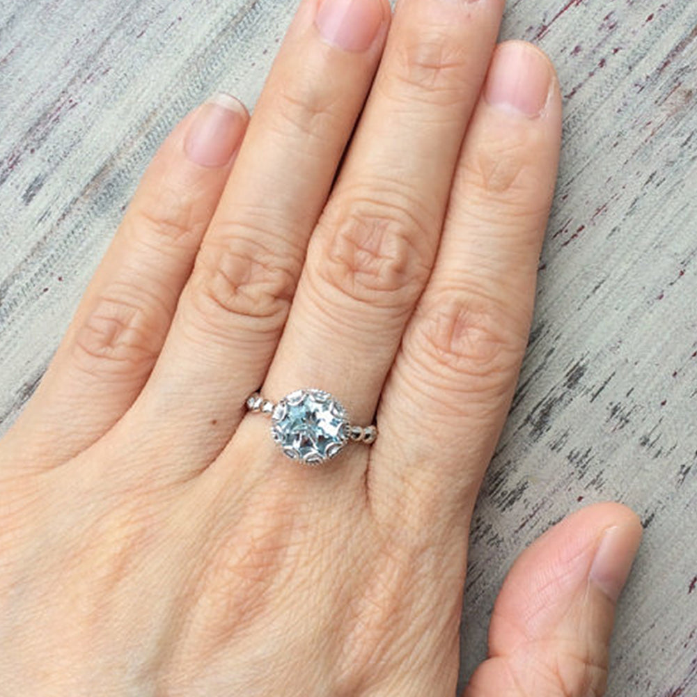 Shiny round rhinestone inlaid in the middle, with unique beads shape finger ring design.