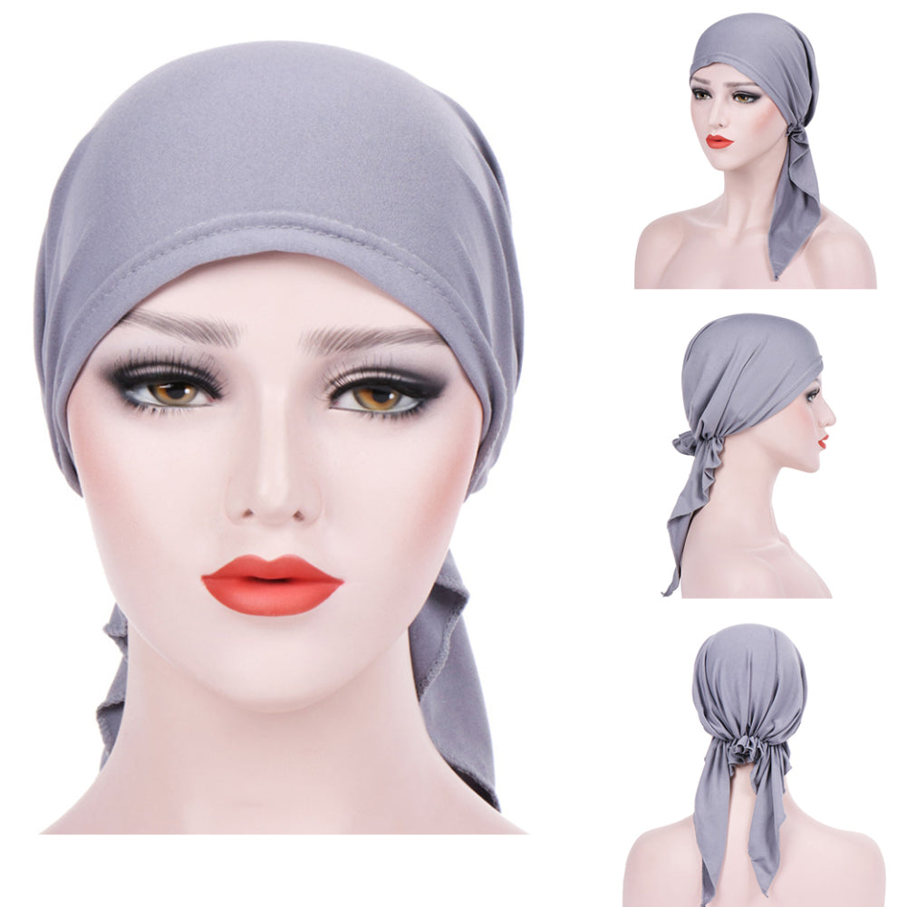 Elegant Solid Color Ruffle Silky Head Wrap Turban Elastic Muslim Women Hijab