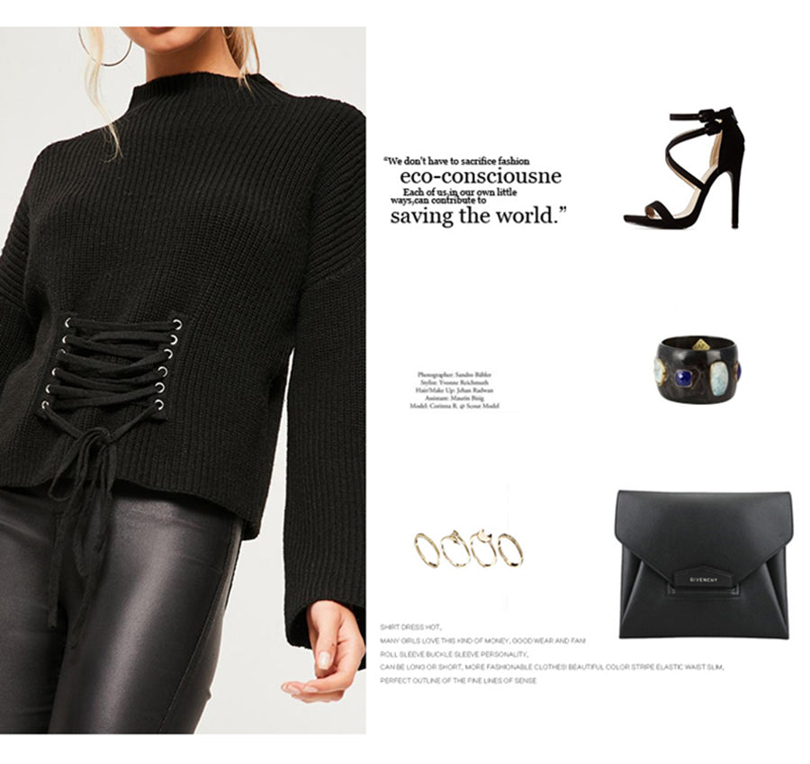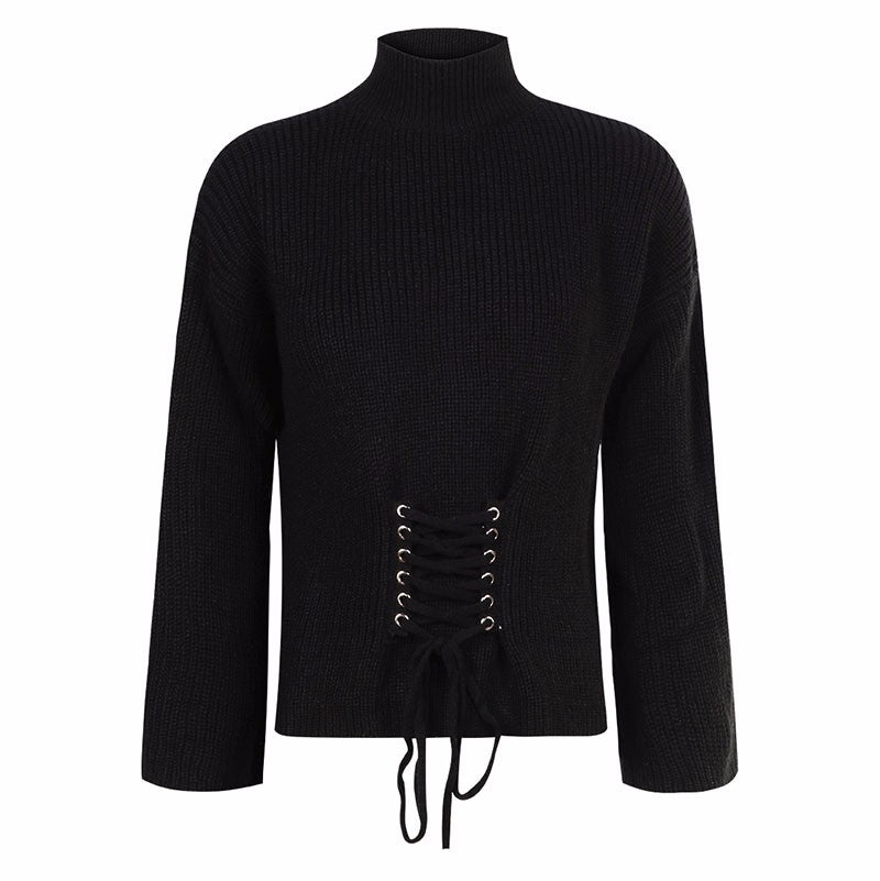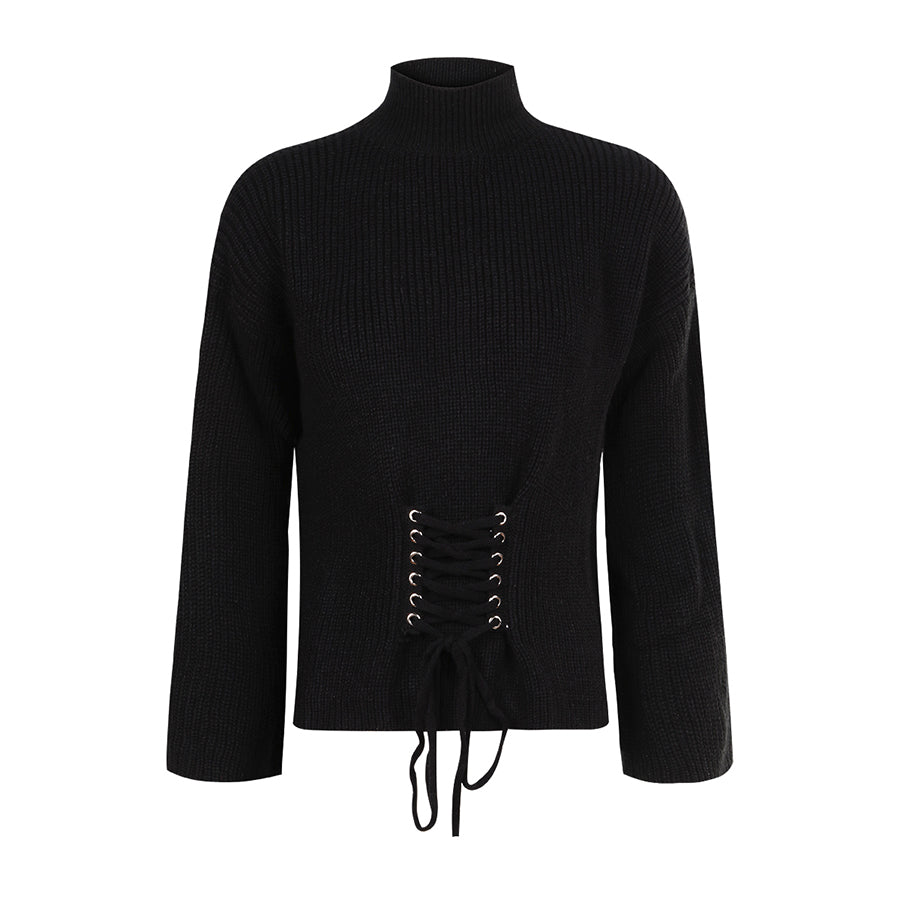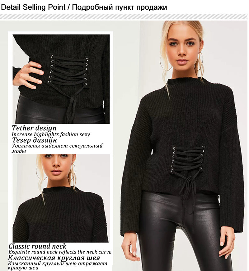 Eternal Show Autumn Knitted Pullover Sweater Women Lace Up Oversize Fall Ladies Sweater Pull Vintage Knitwear Winter Top 50N0521