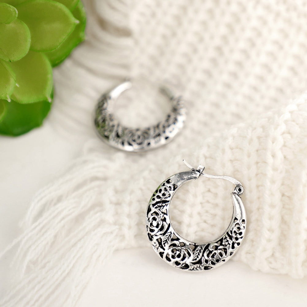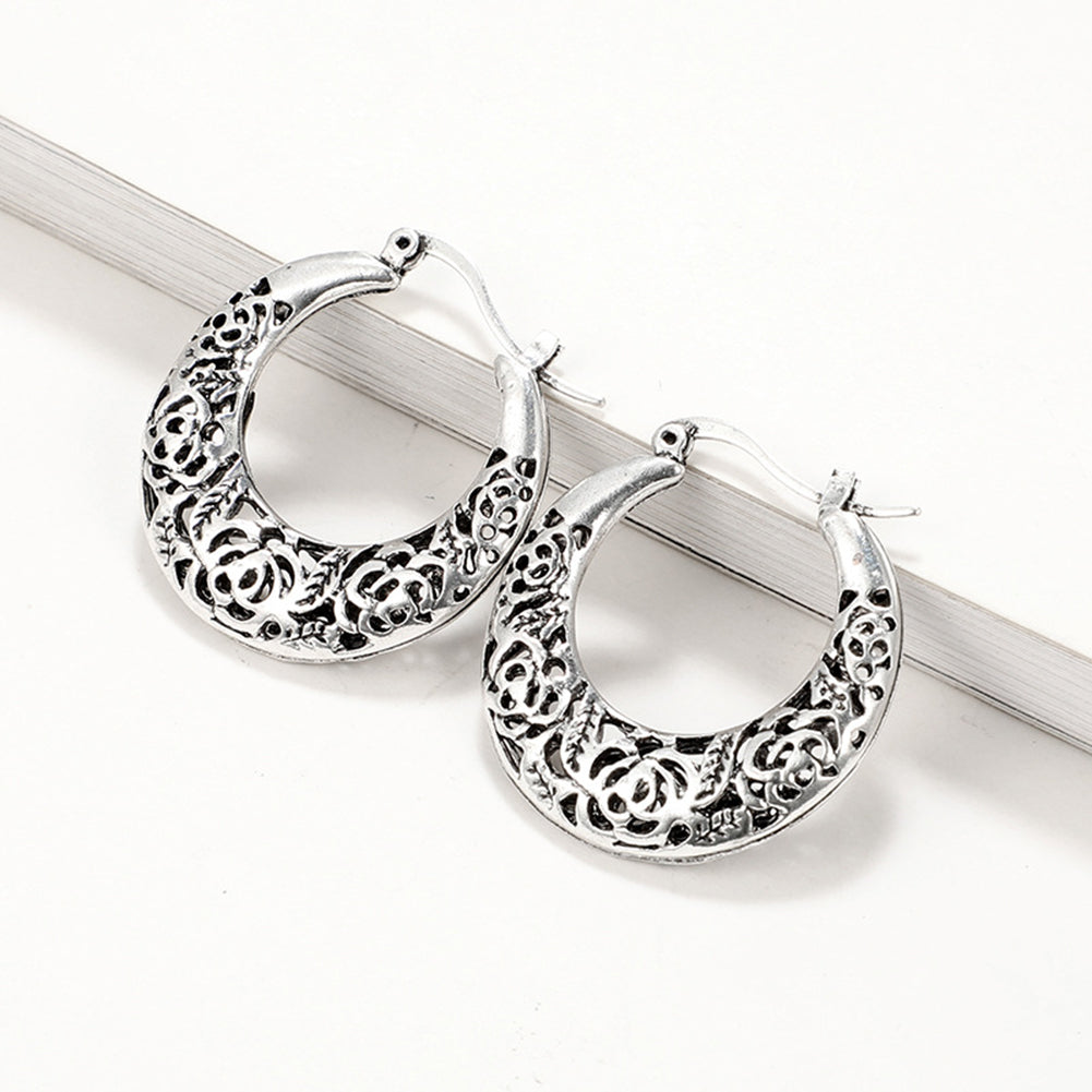Ethnic Openwork Carved Hollow Pattern Horn Hoop Earrings Women Gift Jewelry