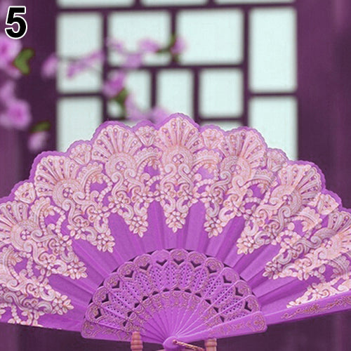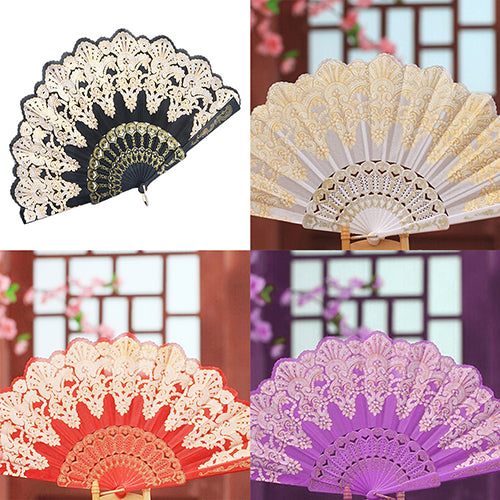 Ethnic Style Dance Party Wedding Golden Tone Hand Held Flower Folding Fan