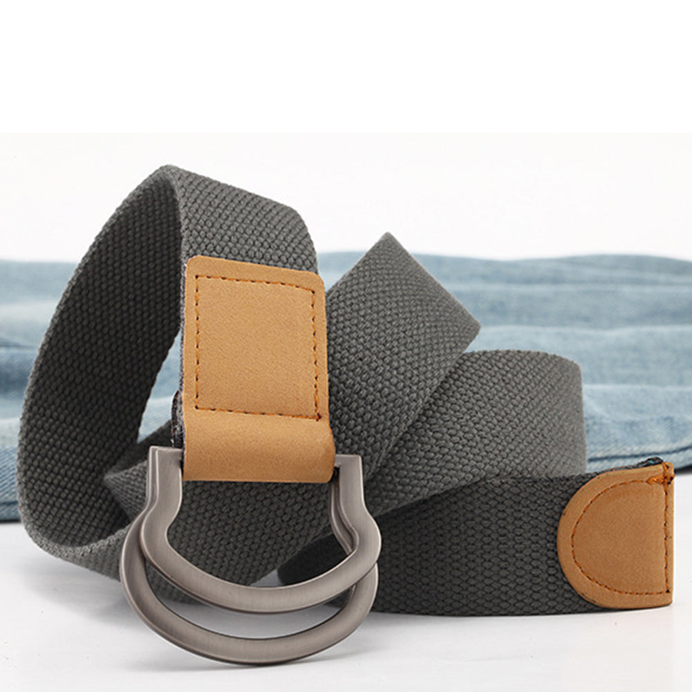 Fashion Casual Men Women Tactical Canvas Belt Double Ring Buckle Waist Strap