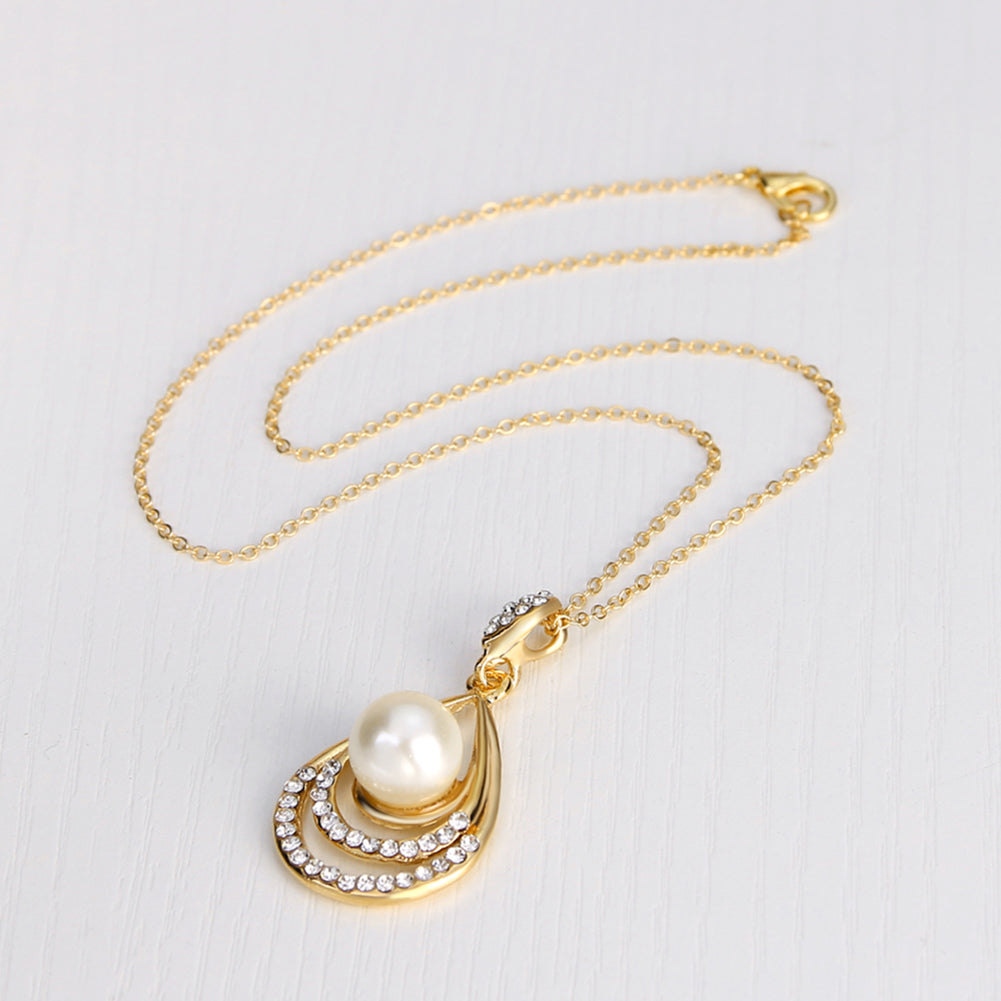 Fashion Faux Pearl Rhinestone Waterdrop Pendant Necklace Earrings Jewelry Set