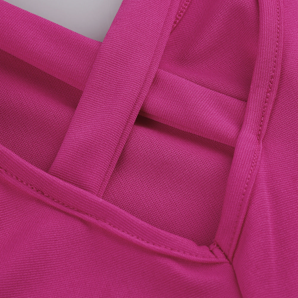 Sexy sleeveless dress with V-neck and cross strappy back design.