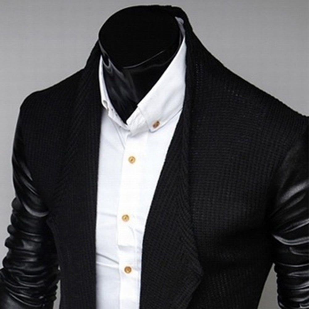 Fashion Men Jacket Formal Long Sleeve Slim Faux Leather Wedding Coat Outwear