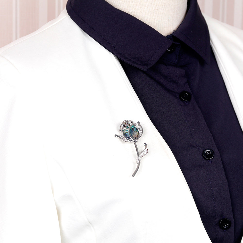 Fashion Rose Flower Colorful Shell Rhinestone Brooch Pin Women Scarf Jewelry