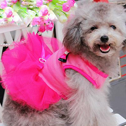 Fashion Small Pet Dog Pink Tutu Bow Rhinestone Wedding Princess Dress Clothes