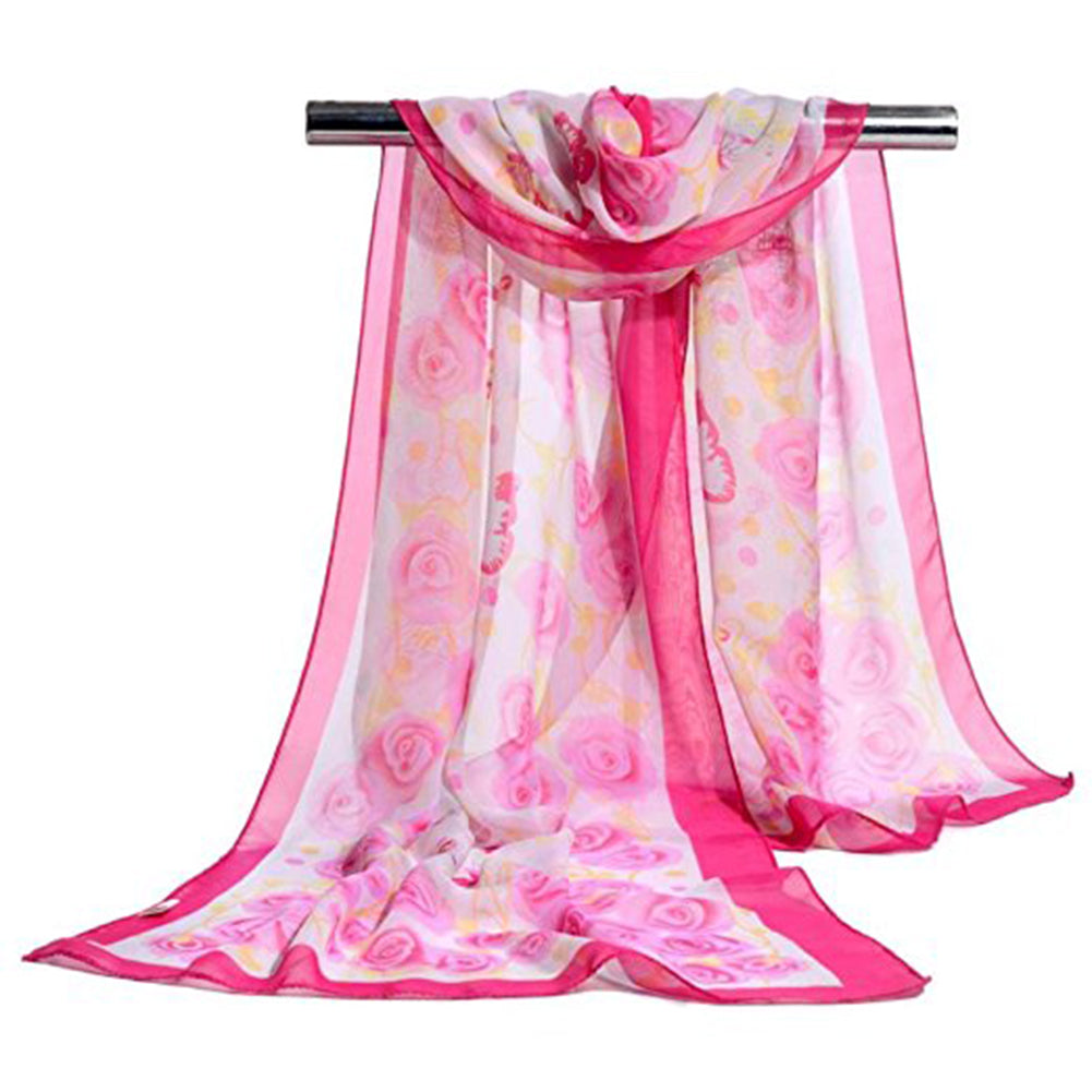 Fashion Women Butterfly Flower Long Chiffon Georgette Soft Wrap Shawl Scarf