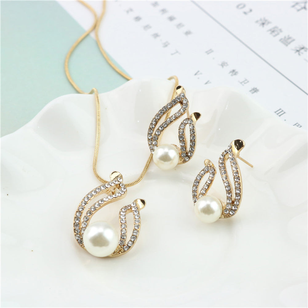 Faux Pearl Water Drop Charm Pendant Earrings Necklace Socialite Lady Jewelry Set