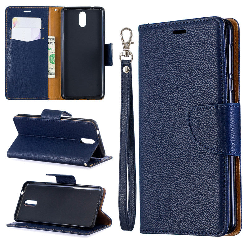 Flip Cover Stand Wallet For Nokia 3.1 2018 Case Pure Color Lichee Pattern PU Leather Mobile Phone Cases