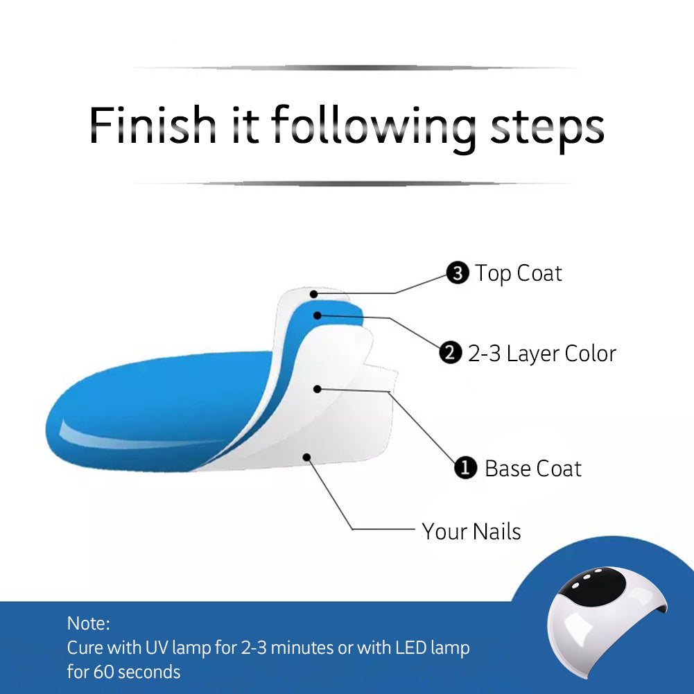 4. Apply first layer of color polish directly, cure with nail lamp for 2-3 minutes