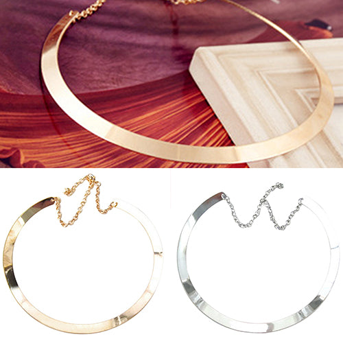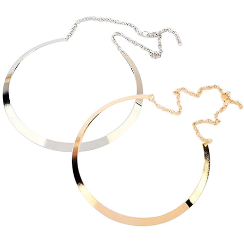 Girl's Thin Mirrored Collar Necklace Shiny Metal Choker Gold Silver Plated Circle Jewelry