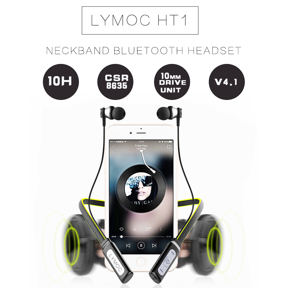 LYMOC HT1 Neckband Headphone Bluetooth HiFi Powerful Bass Magnet Metal Headset Music Sport Bike Gym Handsfree for phone
