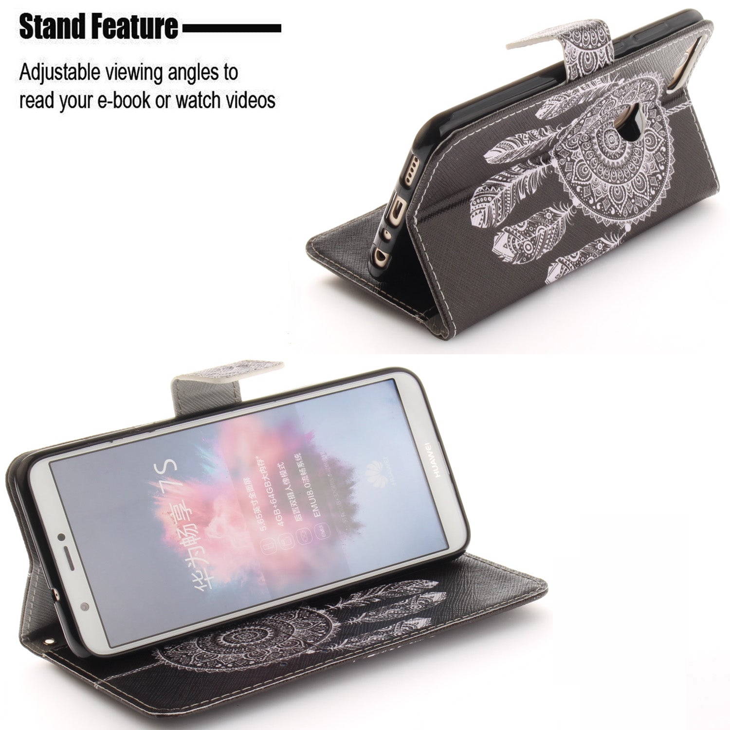 Huawei P Smart/Huawei Honor 9 Lite Phone Case Pattern Printed Flip Magnetic Wallet Card Slot Soft Protective Cover