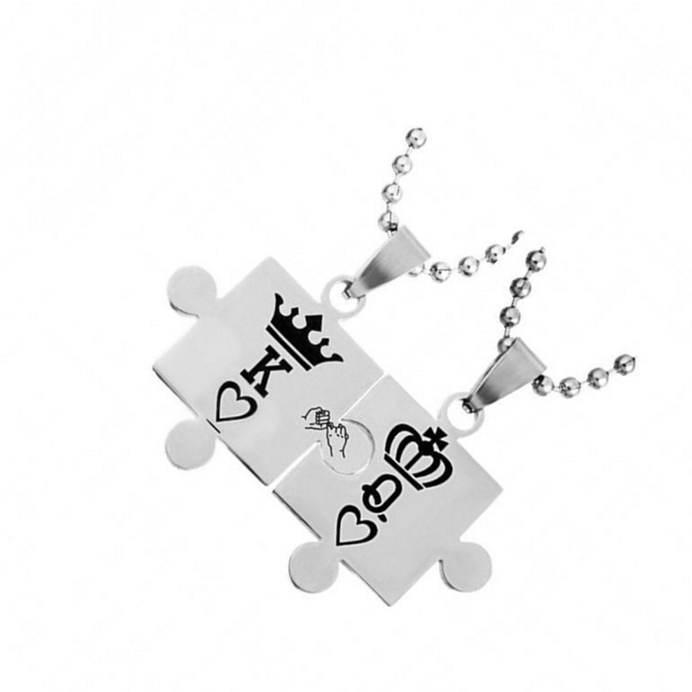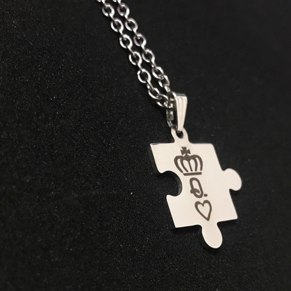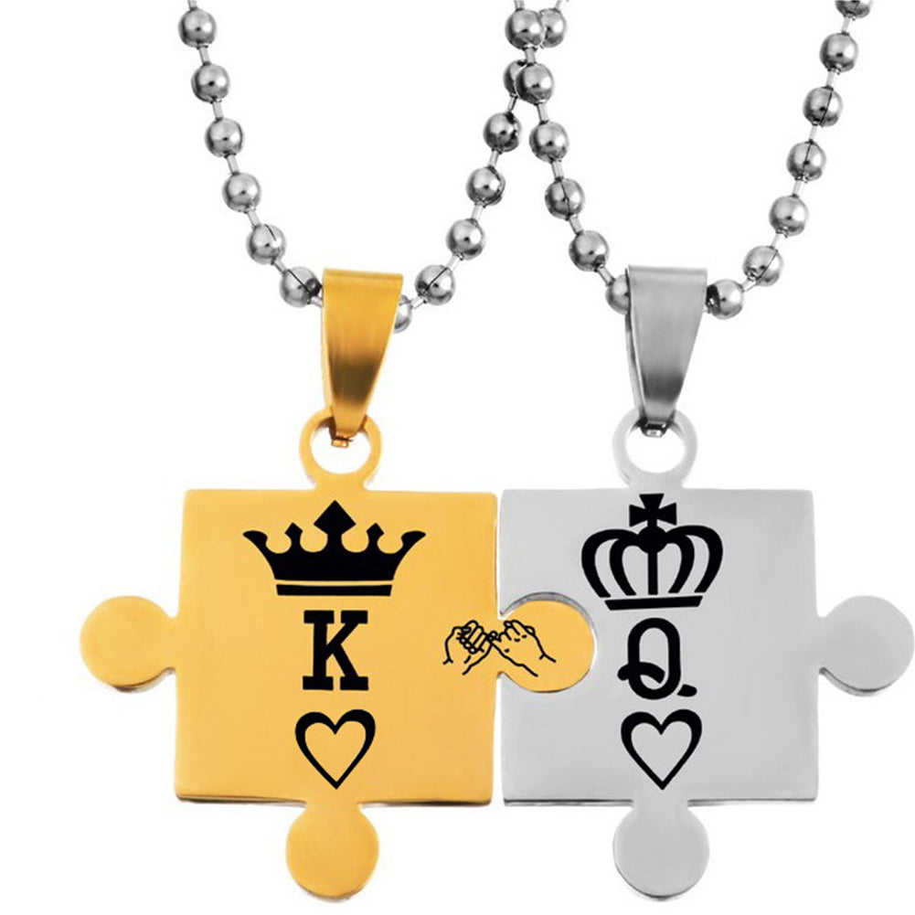 Puzzle style necklace, "K/Q" and crown pattern design, suitable for lovers.
