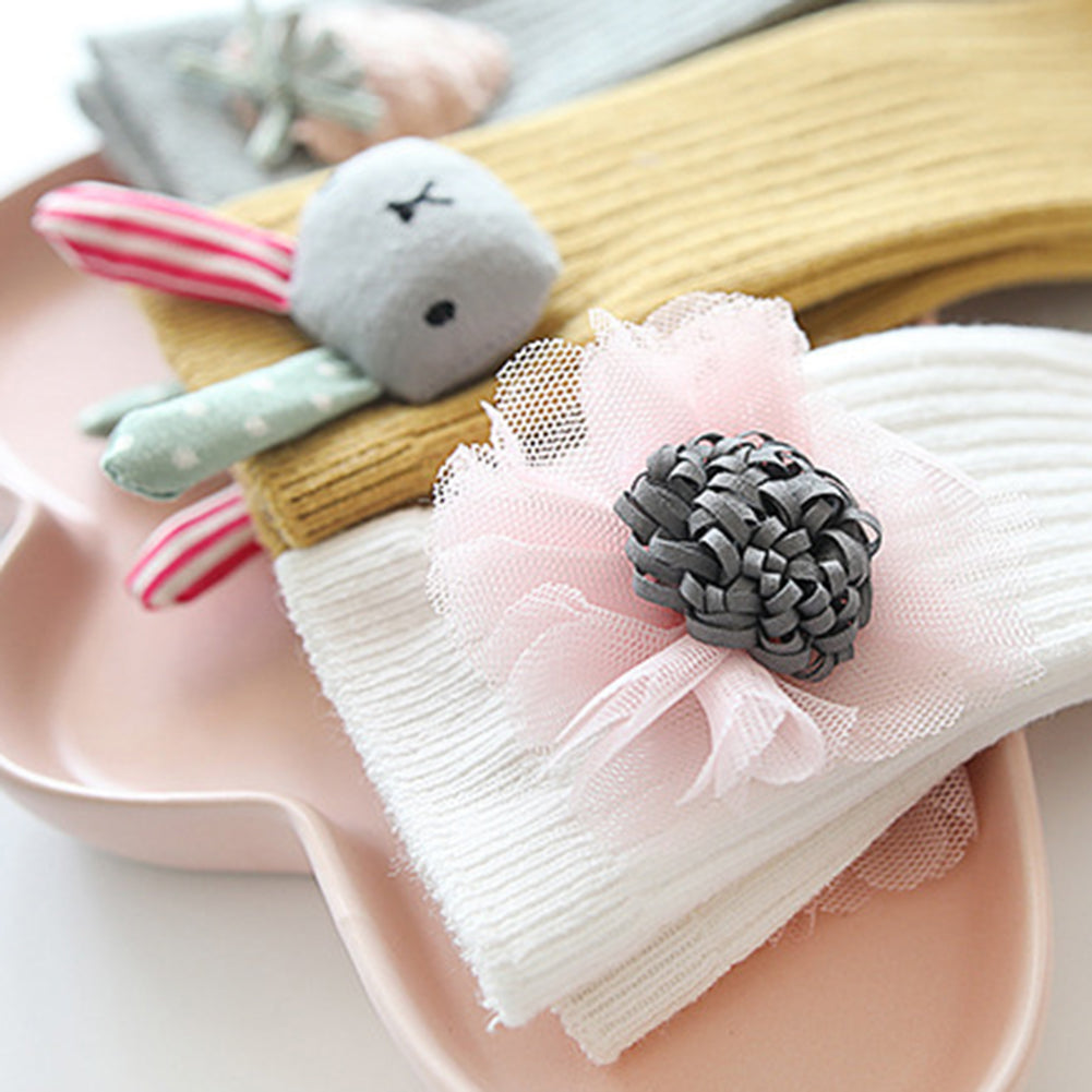 Kids Girls Cute Rabbit Flower Elastic Stockings Below Knee Cotton Long Socks