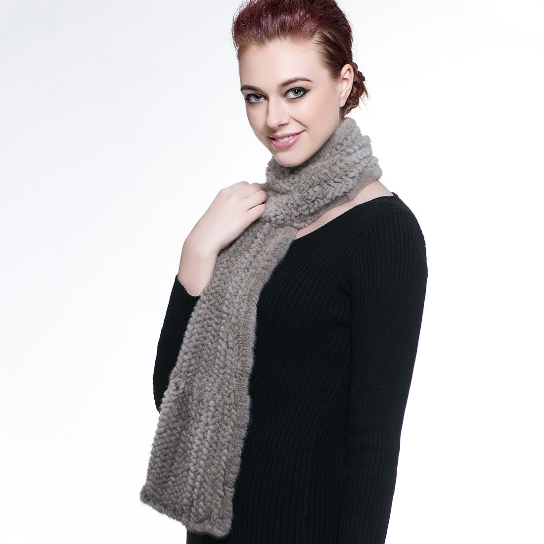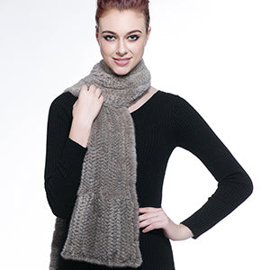 Knitted Mink Fur Pull Through Shawl Bell Bottom Scarf