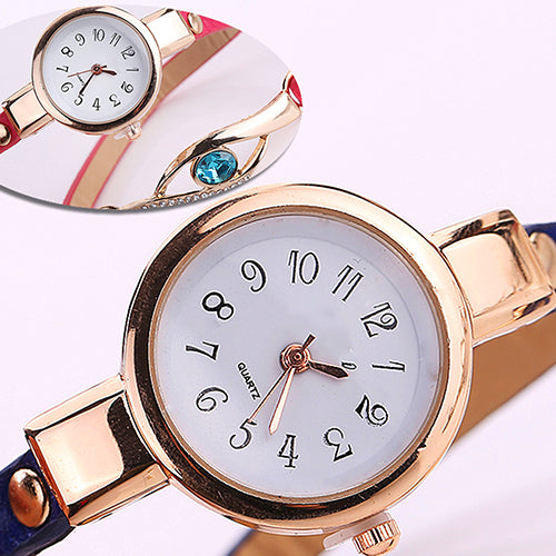 Designed with multilayer warp faux leather strap, alloy case and glaring blue eye.