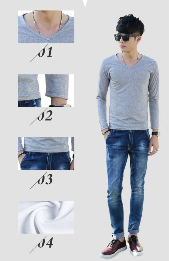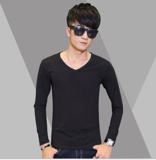 Long Sleeve Men's T-Shirt Slim Fit V-Neck Casual Solid Color Tee Bottoming Top