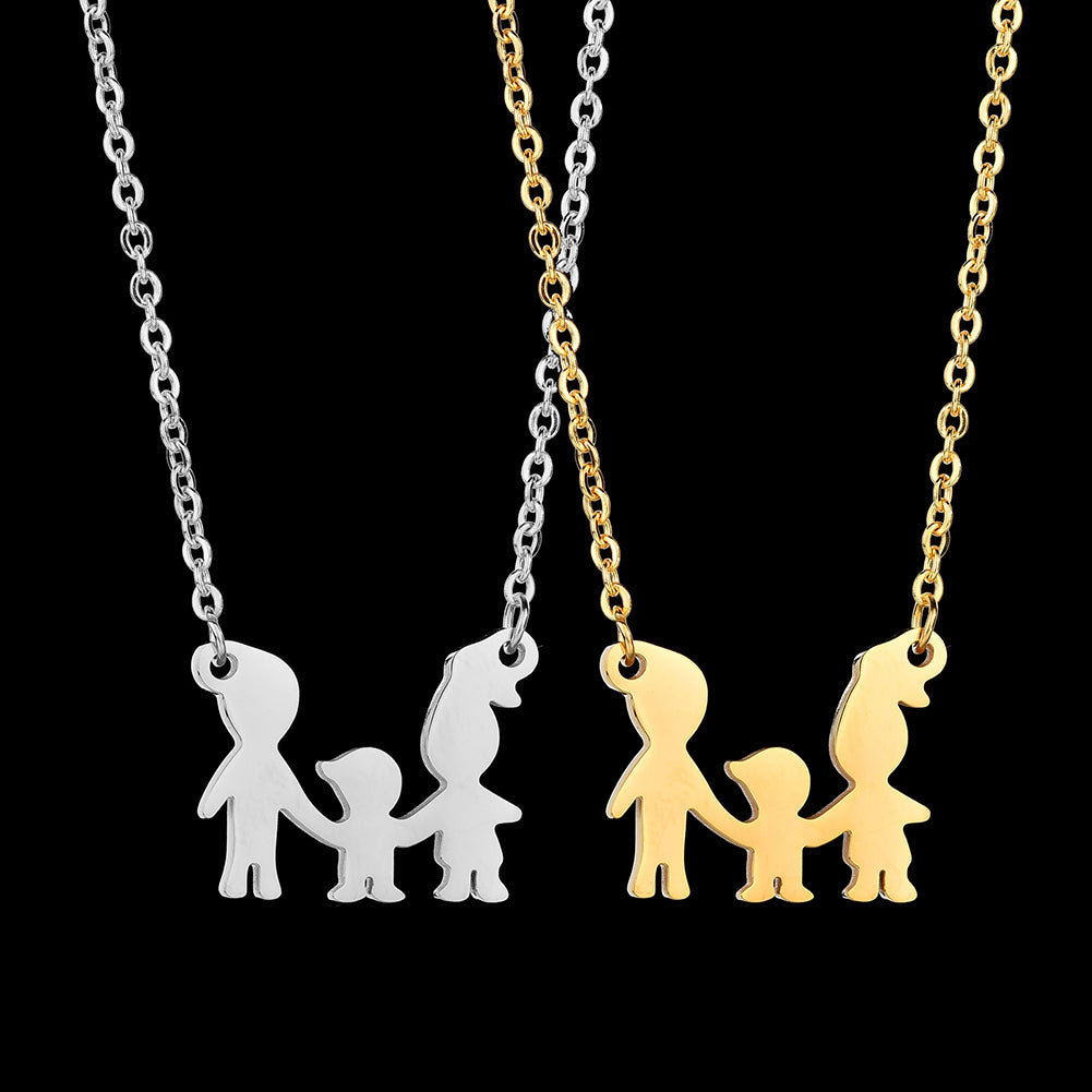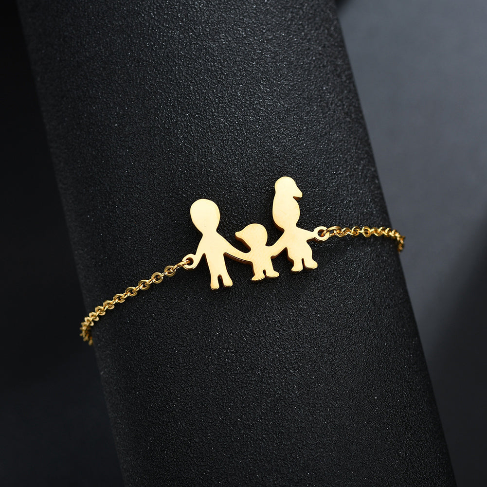 Lovely Family Pendant Stainless Steel Bracelet Necklace Decor Jewelry Set Gift