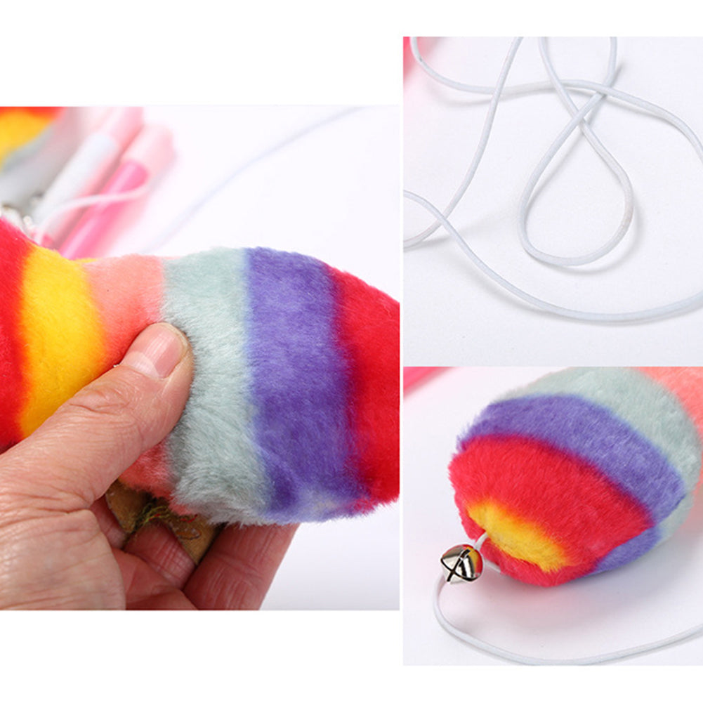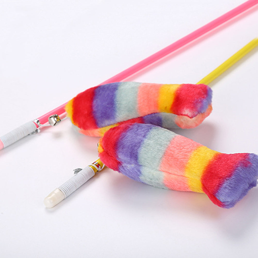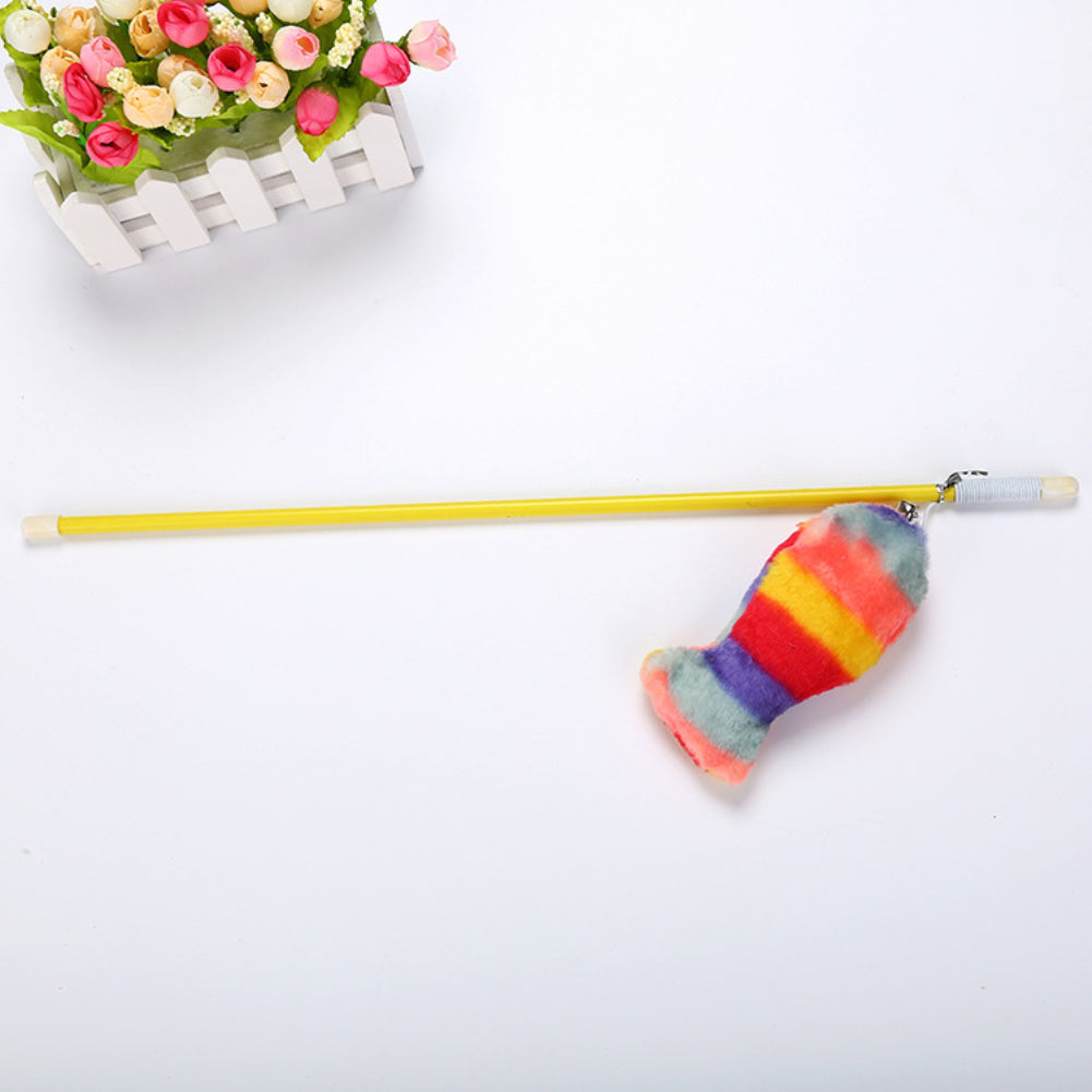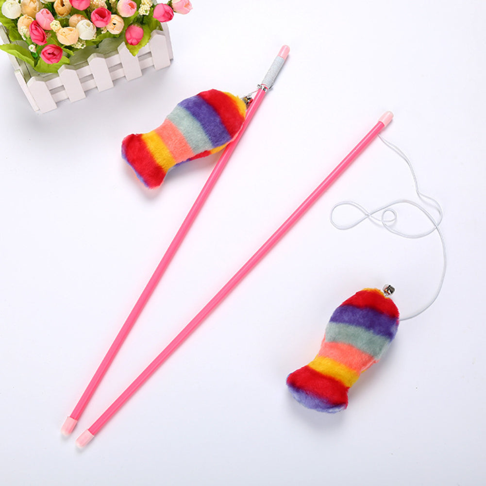 Lovely Rainbow Color Plush Fish Stick Pet Cat Teasing Play Interactive Toy
