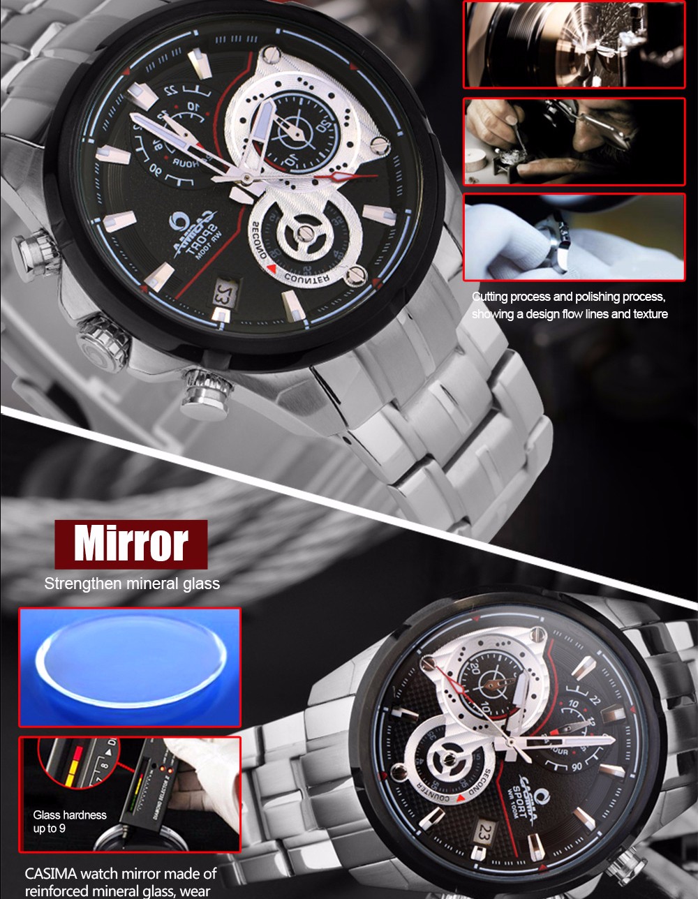 2. Round dial, three Sub-dial for calculagraph function,Japan Quartz movement, accurate time keeping