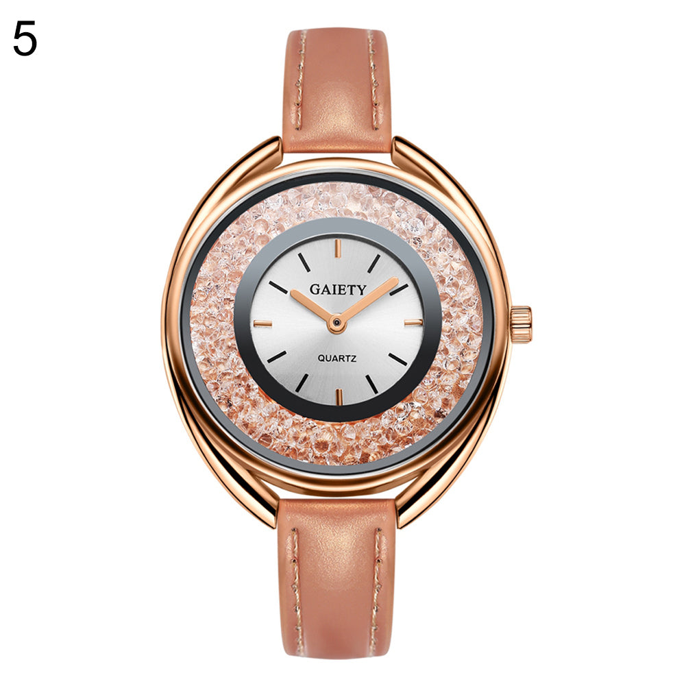Luxury Dazzling Rhinestone Faux Leather Quartz Analog Watch Women Wristwatch