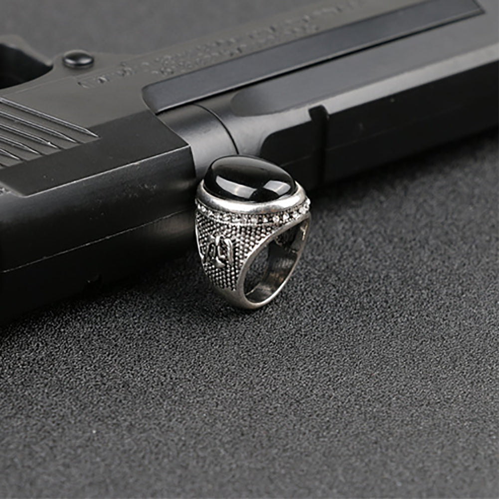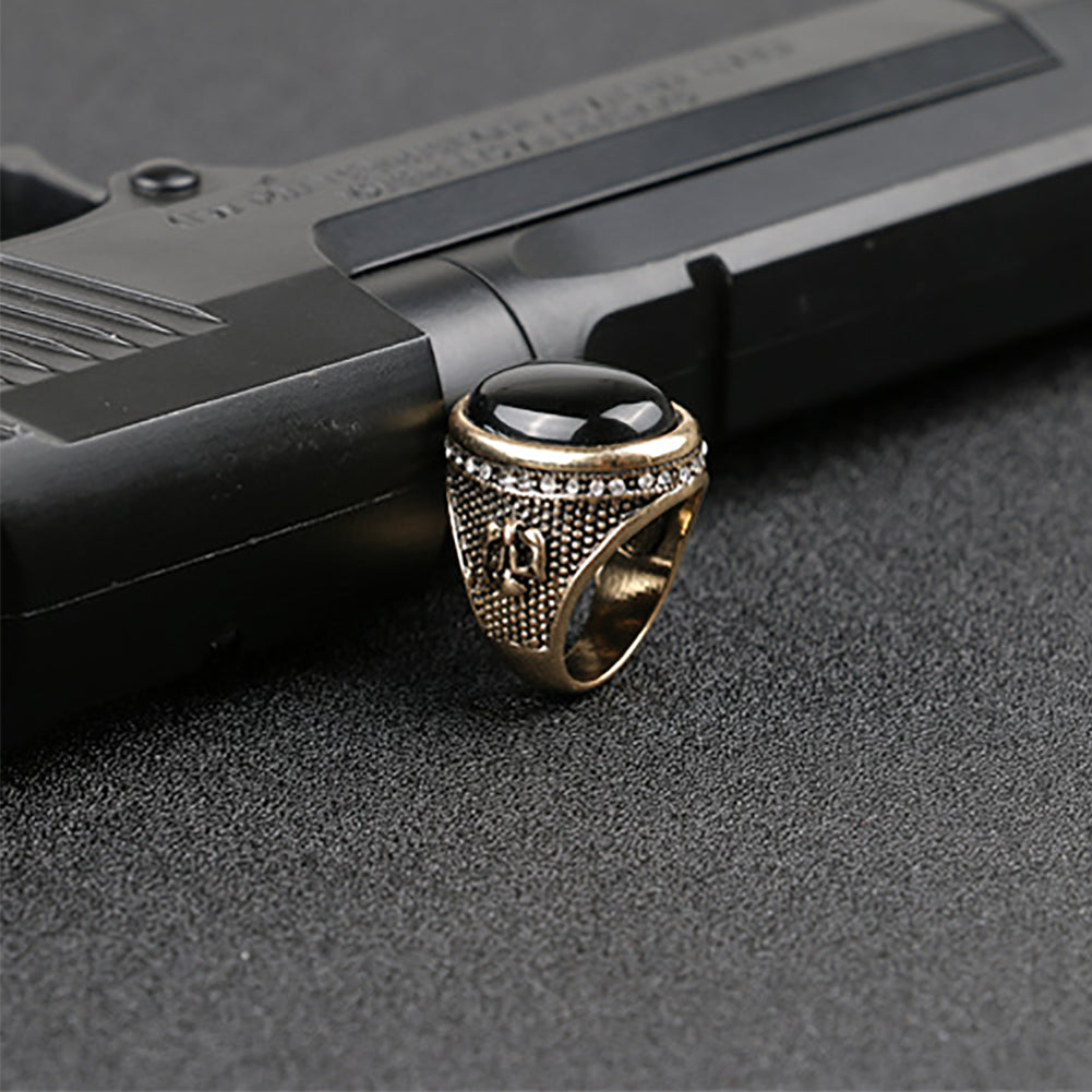 Man Vintage Cool Big Black Rhinestone Inlaid Finger Ring Jewelry Party Gift