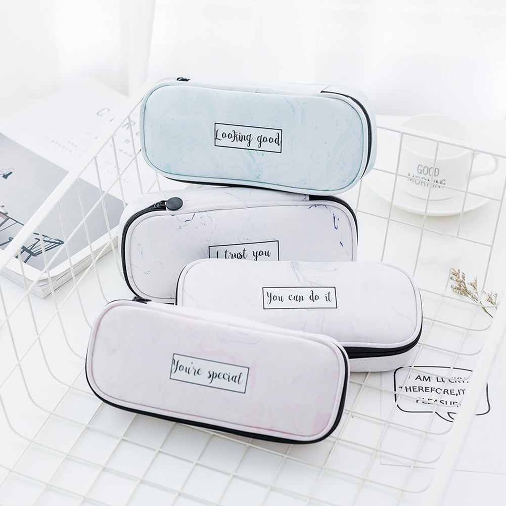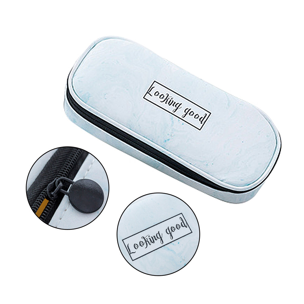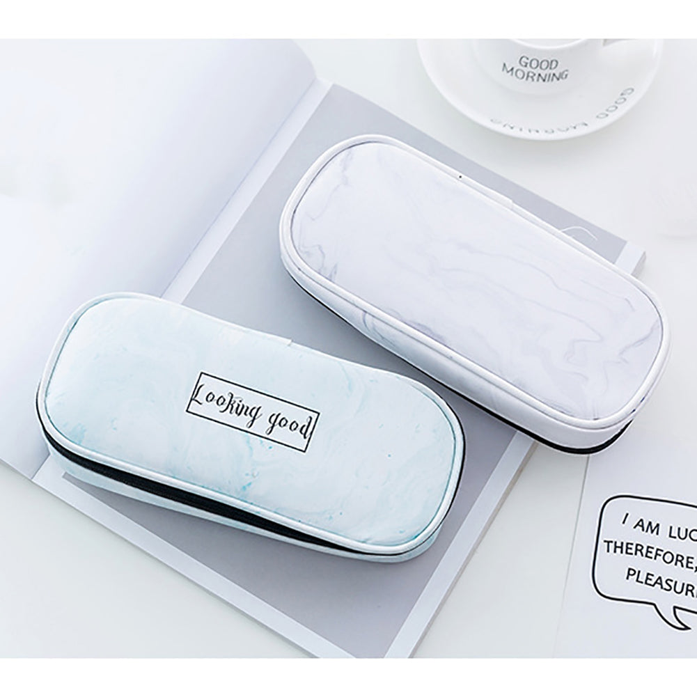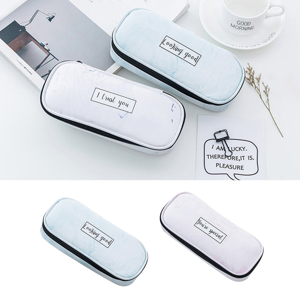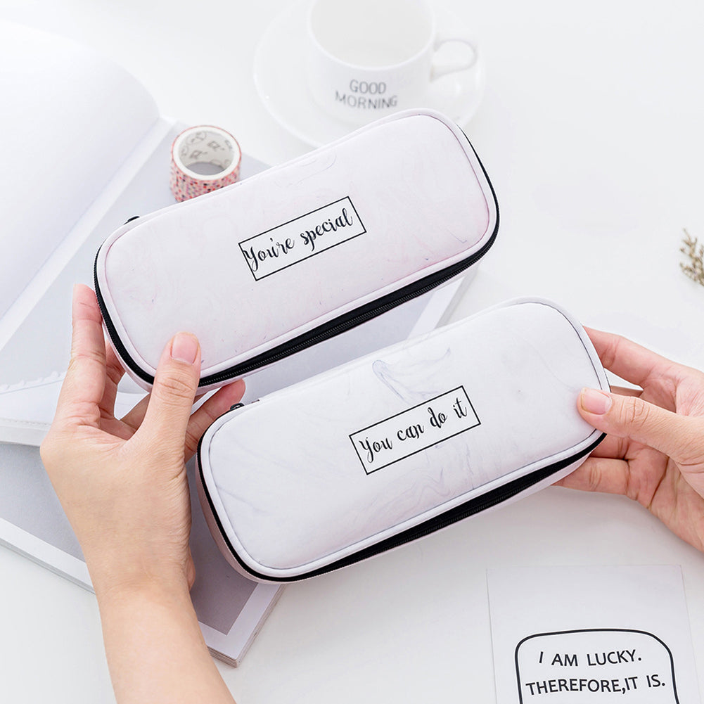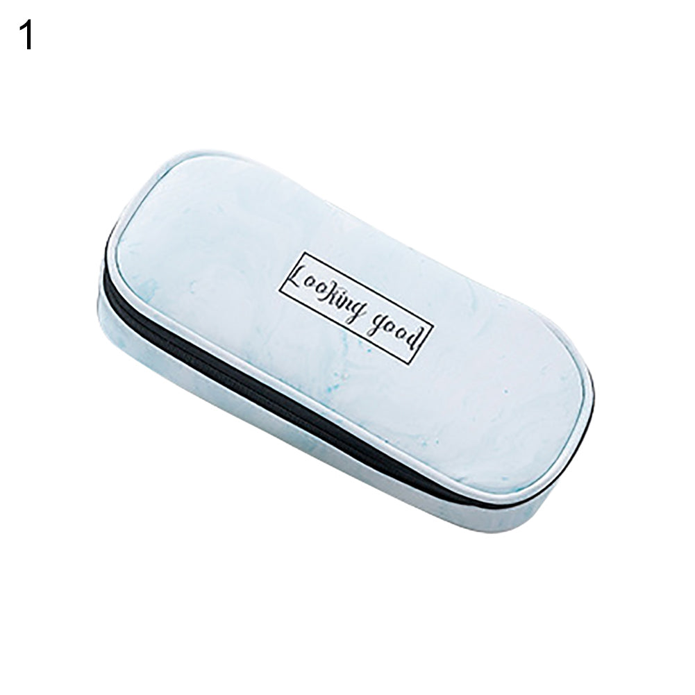 Marble Print Faux Leather Waterproof Large Capacity Pencil Bag Pen Storage Case