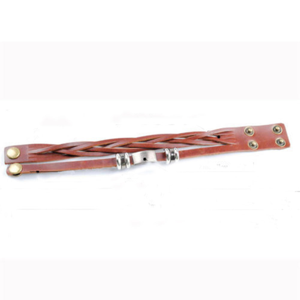 Men Vintage Braided Faux Leather Stainless Steel Cuff Bangle Bracelet Wristband