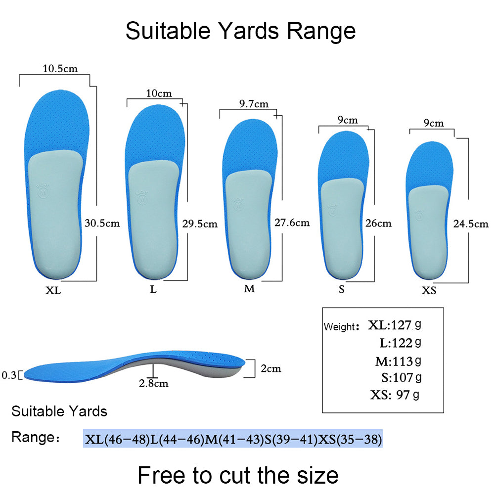 Men Women Flat Feet Orthotic Arch Support Full Length Cushion Pad Shoe Insoles